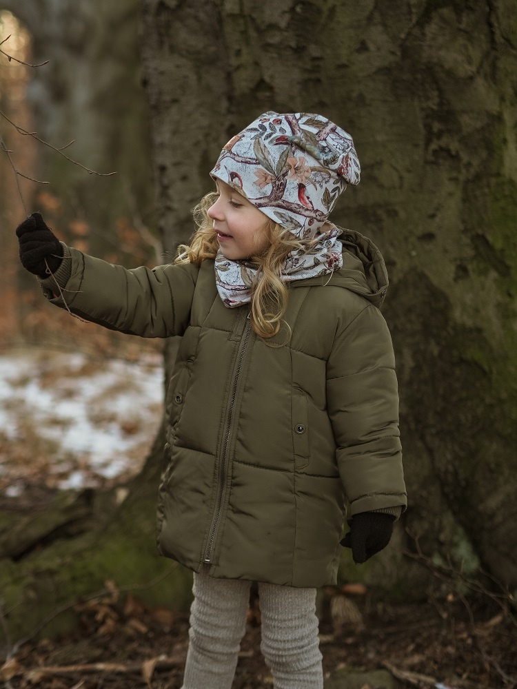 Zestaw wykonany z dwóch warstw miękkiej dzianiny bawełnianej, dzięki czemu idealnie dopasowuje się do każdej dziecięcej główki.