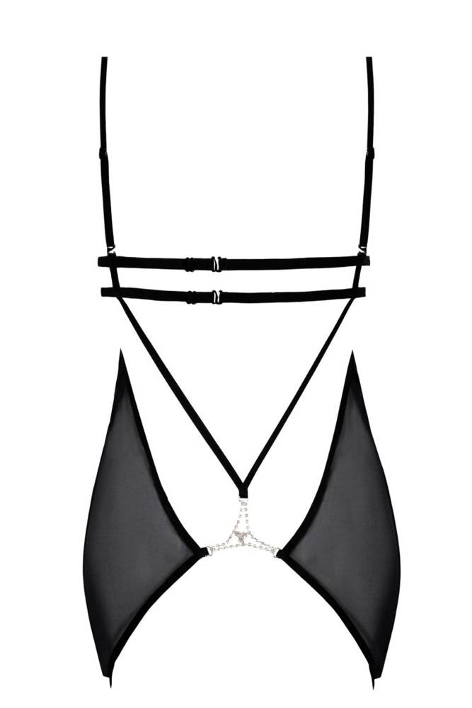 Wykończona zmysłową koronką i biżuteryjnymi ozdobami.