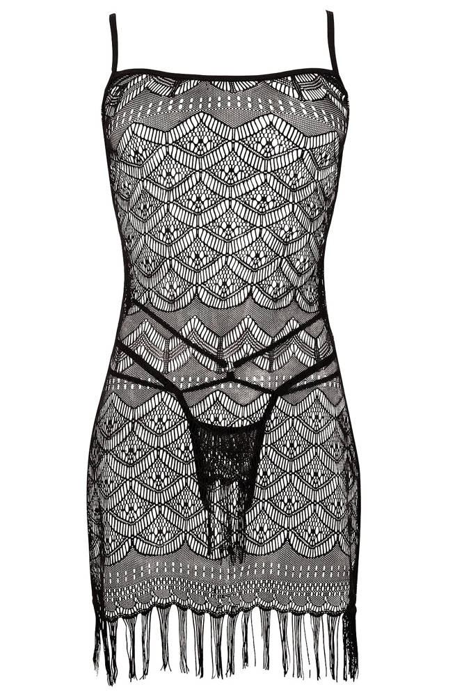 Piękna, delikatna koronka ze zmysłowymi frędzlami w kolorze soczystej czerni to strzał w dziesiątkę.