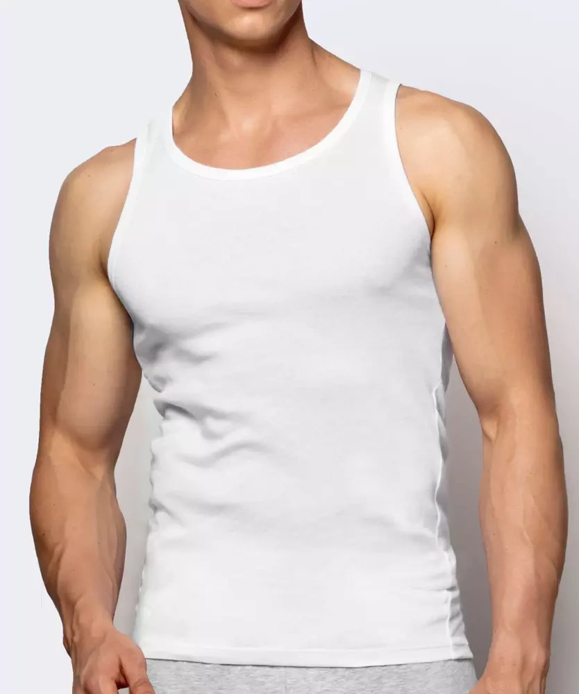 Podkoszulek męski na szerokich ramiączkach. Wykonany z miękkiej, wysokogatunkowej cienkiej bawełny.