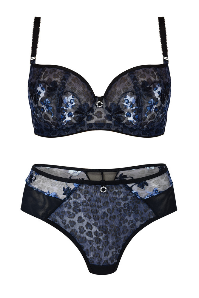 Biustonosz miękki o kroju balkonetki. Na styku miseczek umieszczona jest element i biżuteryjny. Konstrukcja doskonale wyeksponuje biust.