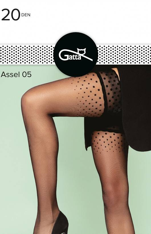 Pończochy samonośne 20 den ozdobione delikatnym wzorem w kropki.