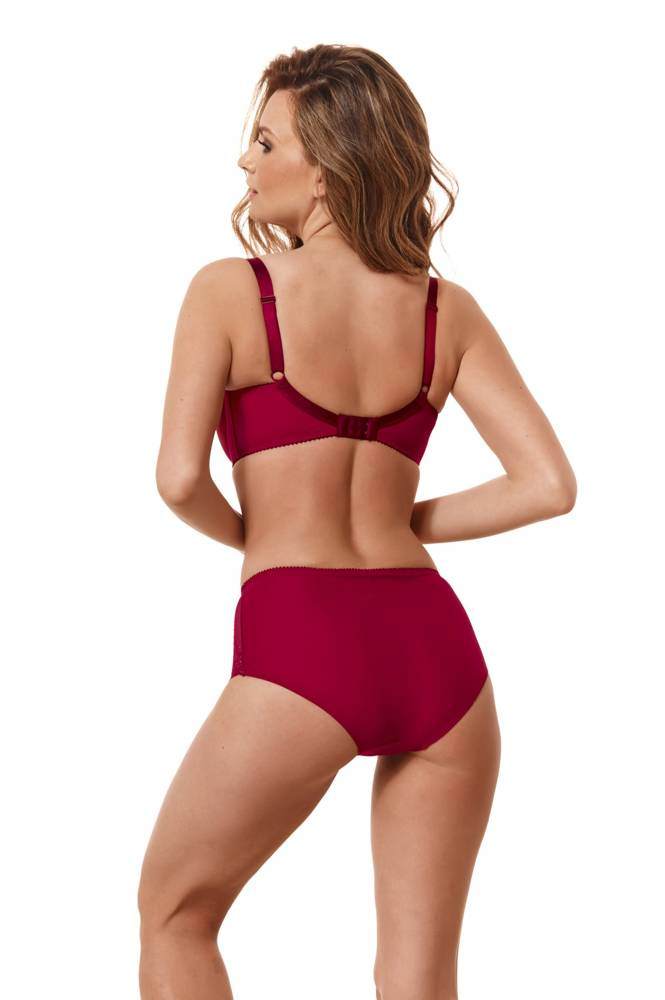 Majtki damskie w kolorze bordowym. Wykonane z delikatnej i przyjemnej tkaniny lekko opinającej się na ciele i nadającej ponętny kształt pośladkom.