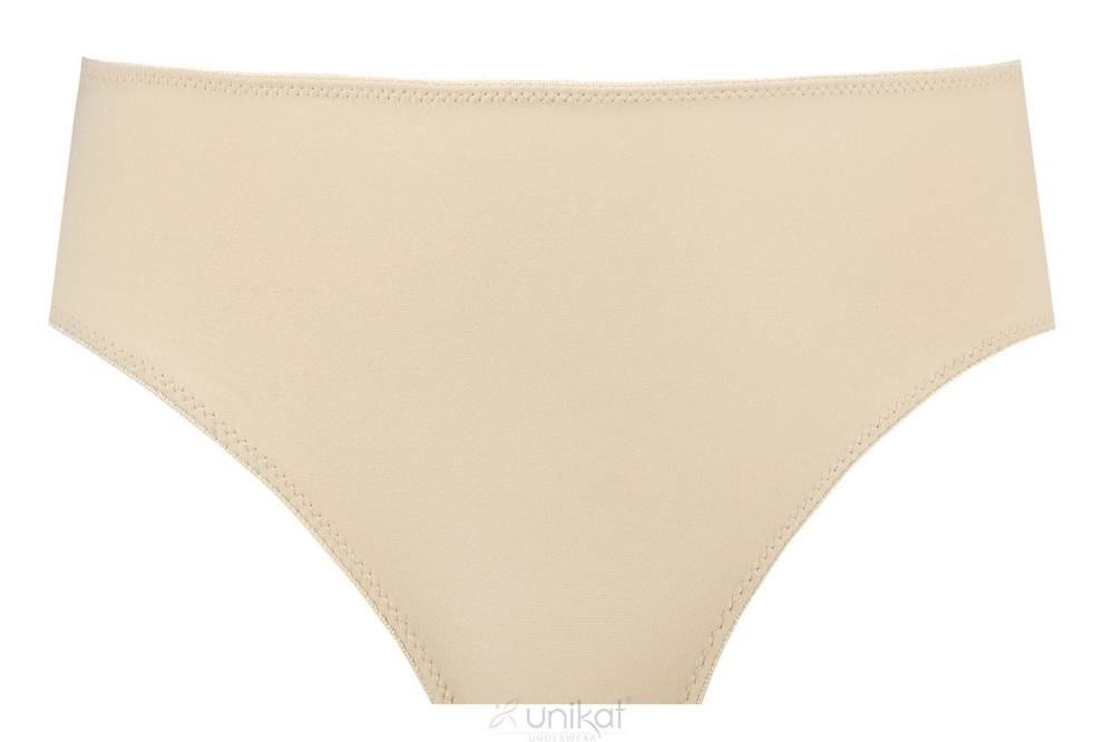 Proste i wygodne figi o fasonie bokserek. Wykonane z gładkiej, beżowej dzianiny. Szersze, bardziej zabudowane boki, pozwalają ukryć drobne niedoskonałości. Majteczki będą idealnym dopełnieniem do biustonosza DAGNA push-up.
