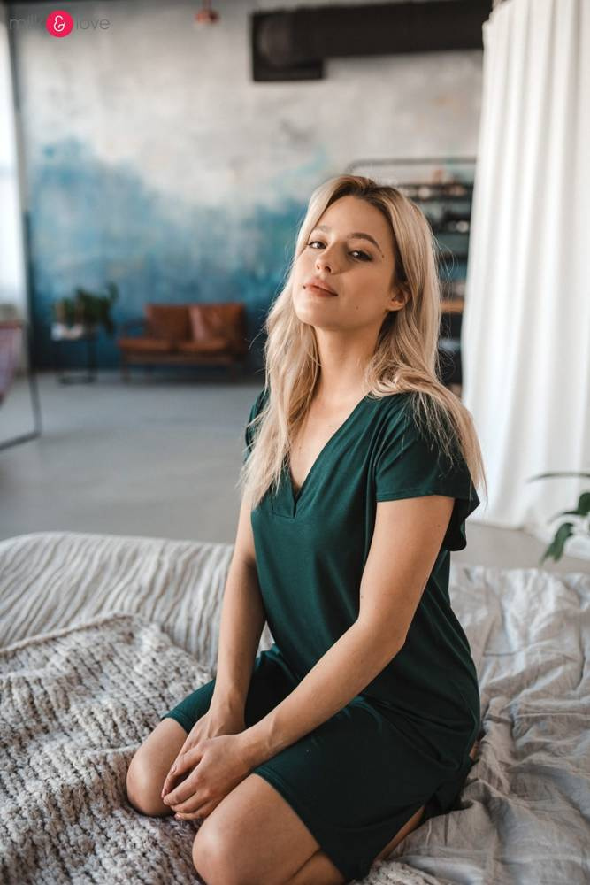 Opinie o Moon bambusowa koszula nocna ciążowa i do karmienia Milk&Love butelkowa zieleń
