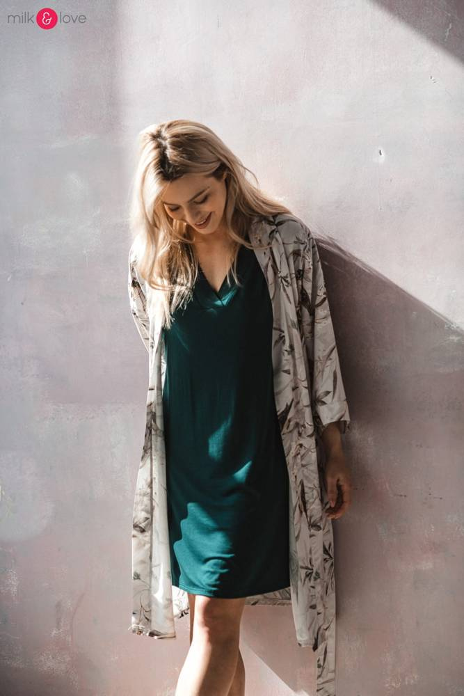 Moon bambusowa koszula nocna ciążowa i do karmienia Milk&Love butelkowa zieleń