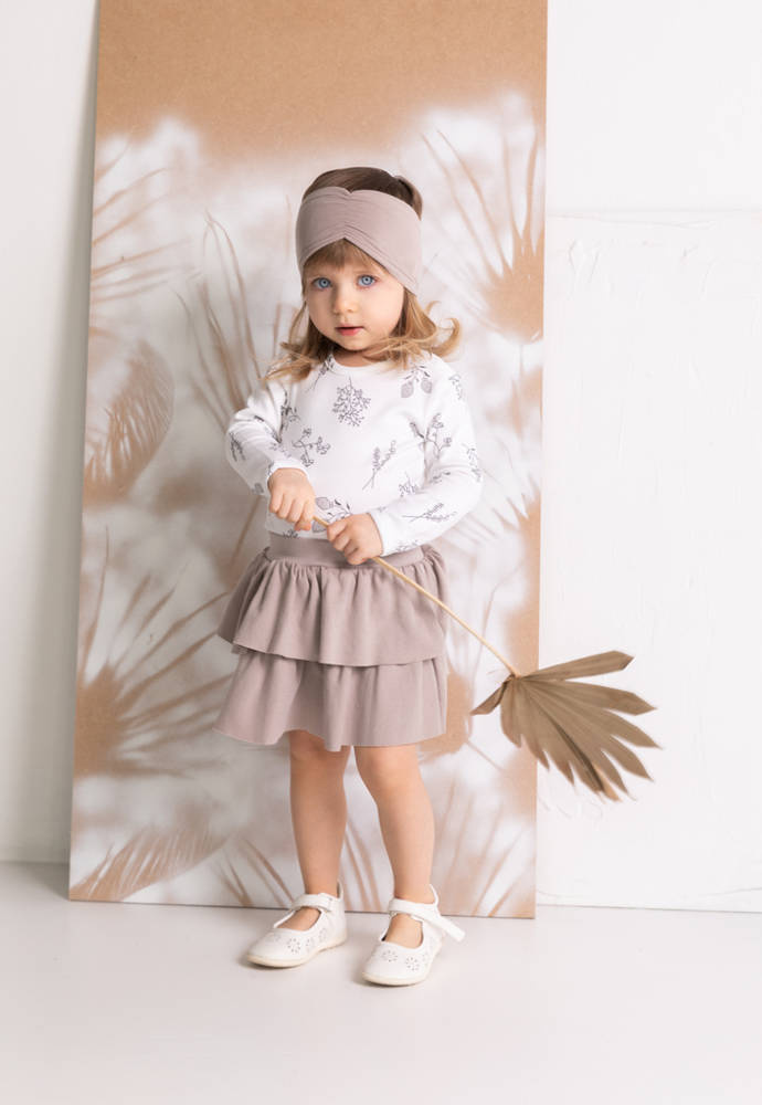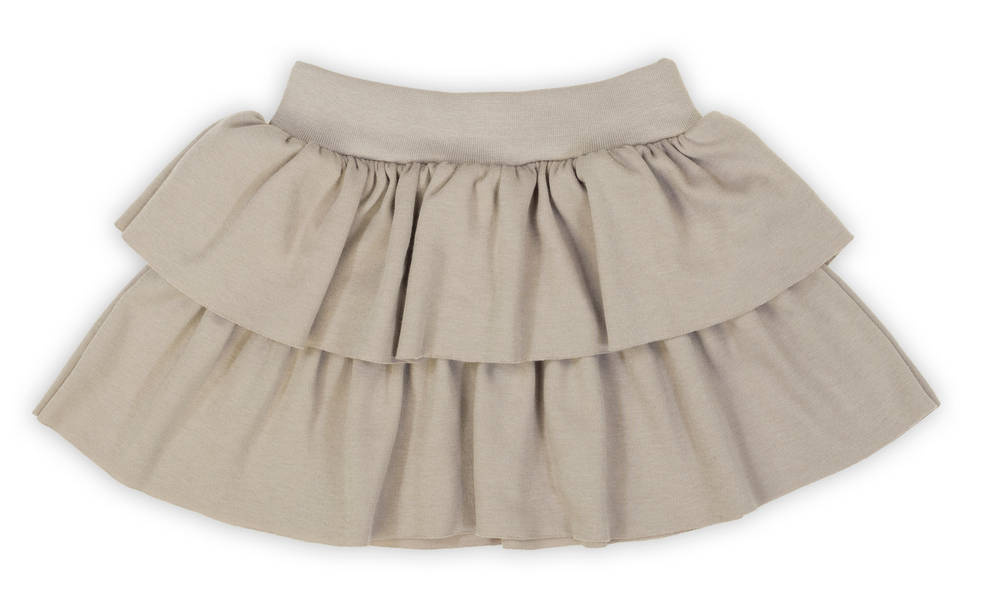 Beżowa spódniczka dziewczęca z 100% bawełny. Ozdobna falbanką, która dodaje jej uroku i zwiewności. Idealna na wiosnę i lato. W pasie wszyta jest gumka, która utrzymuje ubranko w odpowiednim miejscu, ale nie uciska w brzuszek. Luźny fason nie krępuje ruchów dziecka i zapewnia komfort noszenia. Spódniczkę można dowolnie łączyć z innymi ubrankami z kolekcji Gaja, tworząc unikatowe stylizacje. Warto o niej pamiętać kompletując letnią garderobę.
