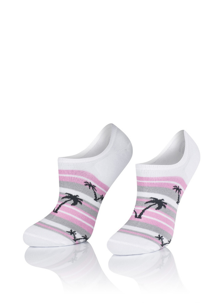 Kolorowe skarpety damskie z ozdobnym wzorem, wykonane z wysokiej jakości bawełny.