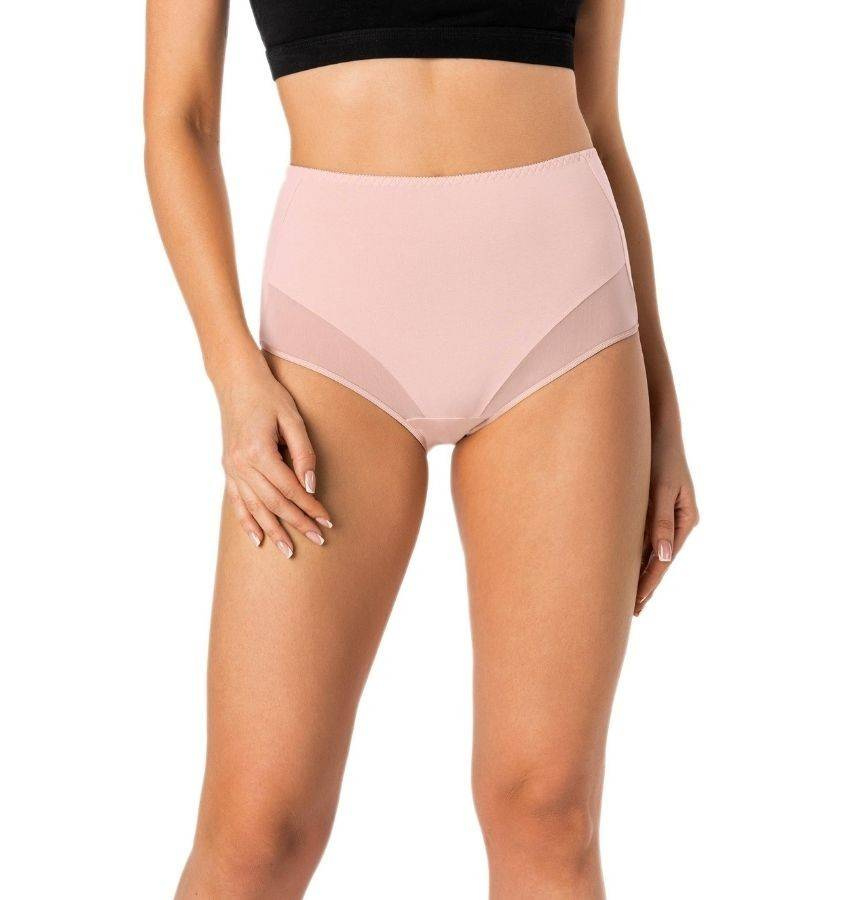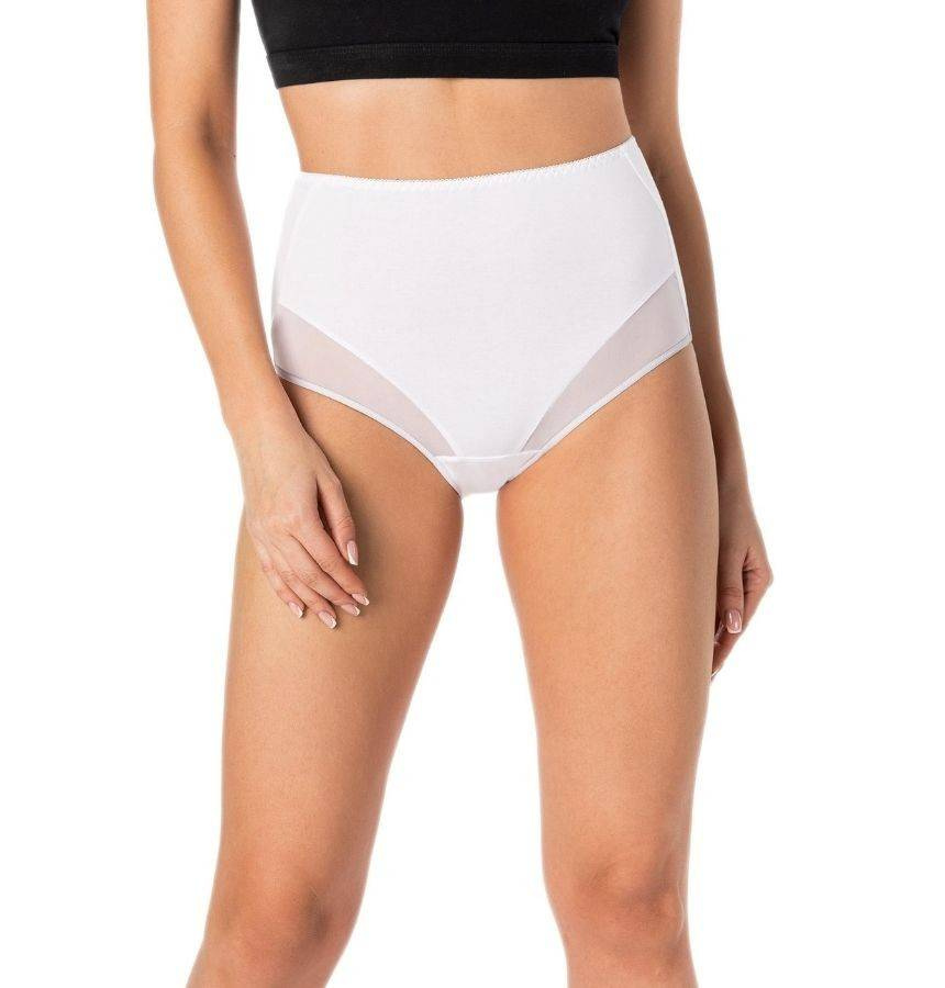 Figi wykonane są z wysokiej jakości delikatnej, miłej w dotyku przewiewnej bawełny z dodatkiem elastycznej nici lycry. Idealnie dopasowują się do sylwetki, po praniu nie rozciągają się i nie zmieniają fasonu. Posiadają wysoki stan, dzięki któremu maskują kobiece niedoskonałości sylwetki. Z przodu majtki zdobione są przeźroczystą delikatną siatką. Podstawowe kolory majtek w zestawie beżowy i biały sprawdzą się pod jasną odzieżą, czarne pod ciemną pozostałe kolory pod wielokolorowymi ubraniami. Majtki są bardzo wygodne i komfortowe w codziennym użytkowaniu.