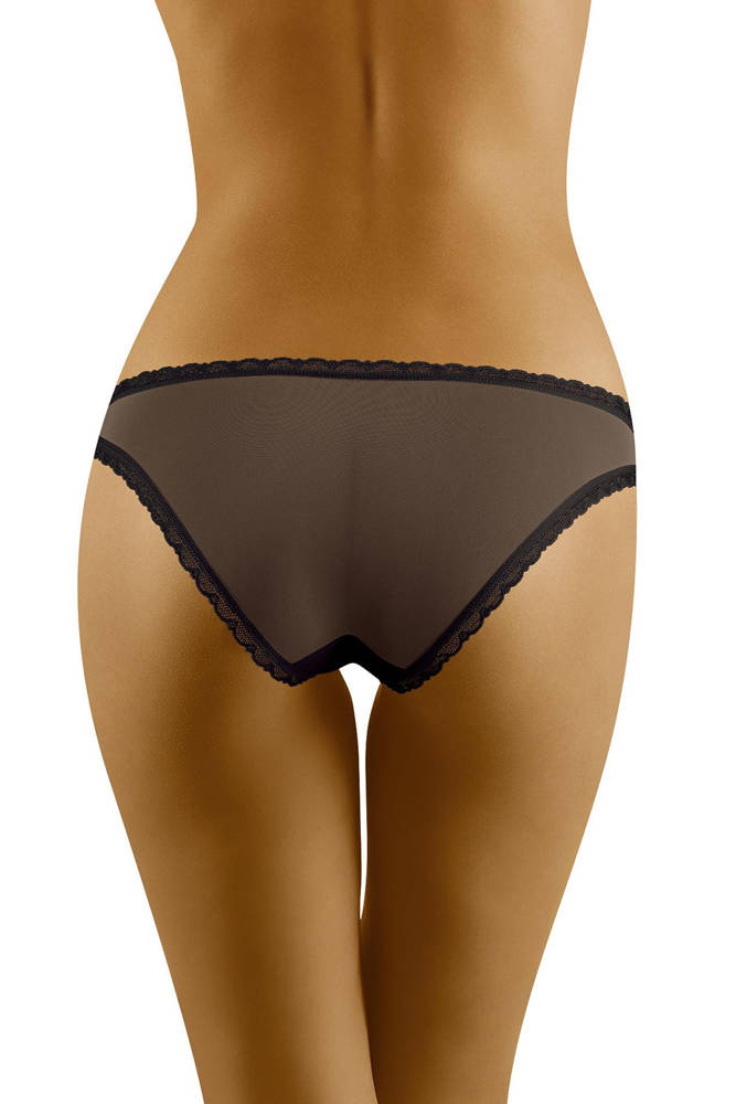 Zmysłowe figi damskie o klasycznym kroju. Kusząca siateczka, z przodu wstawka z koronki.