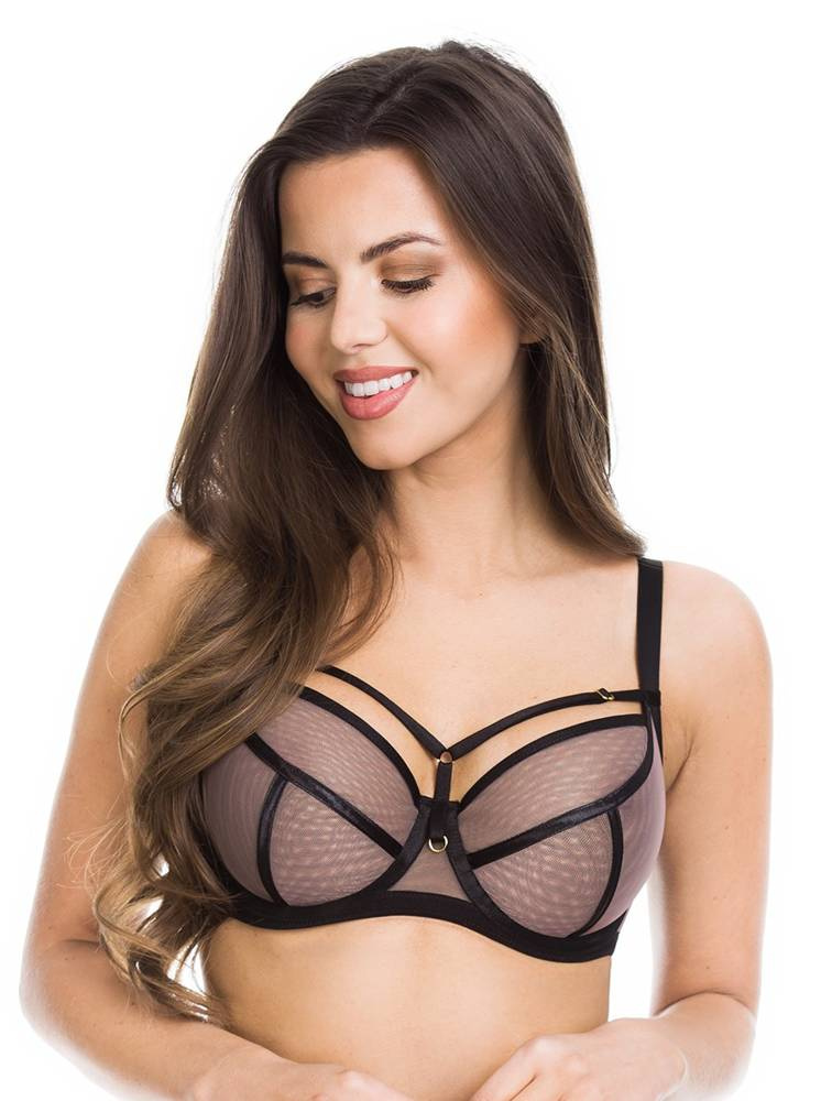 Biustonosz miękki z miseczkami wykonanymi z dwóch warstw tiulu. Konstrukcja jednocześnie stabilna i lekka, krój miseczek z beżowymi przeszyciami dodaje zmysłowego charakteru. Całość zwieńczają paseczki na dekolcie. Haftki i regulatory w złotym kolorze nadają całości elegancji. Biustonosz idealnie sprawdzi się na niemal każdym biuście!