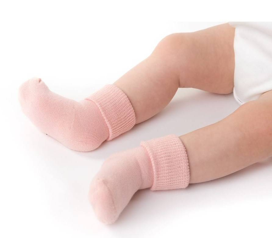 Gładkie bawełniane dziecięce skarpety frotte z wywinięty ściągaczem.