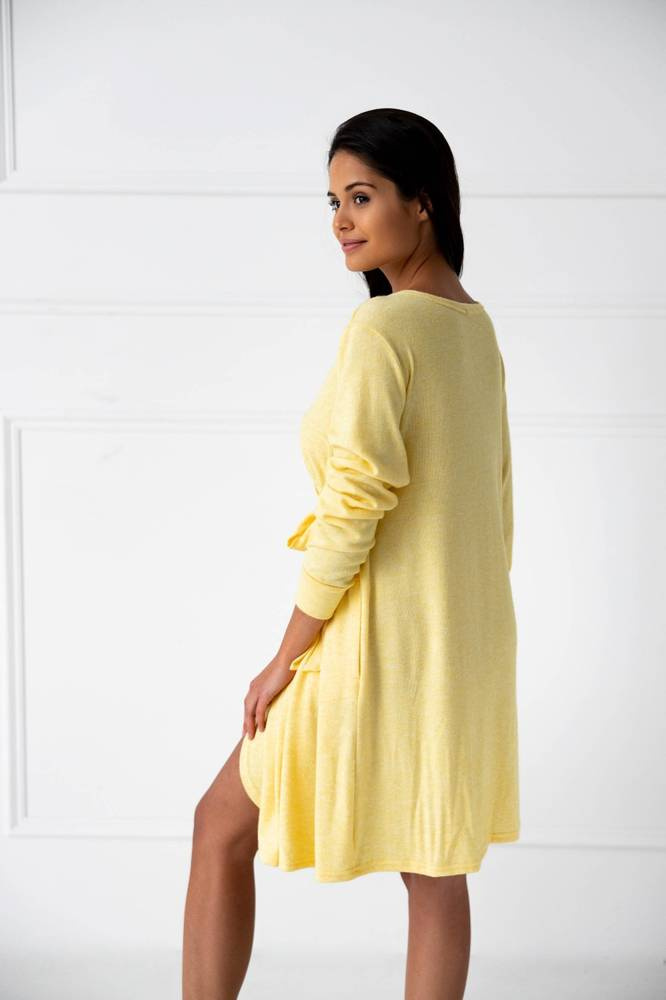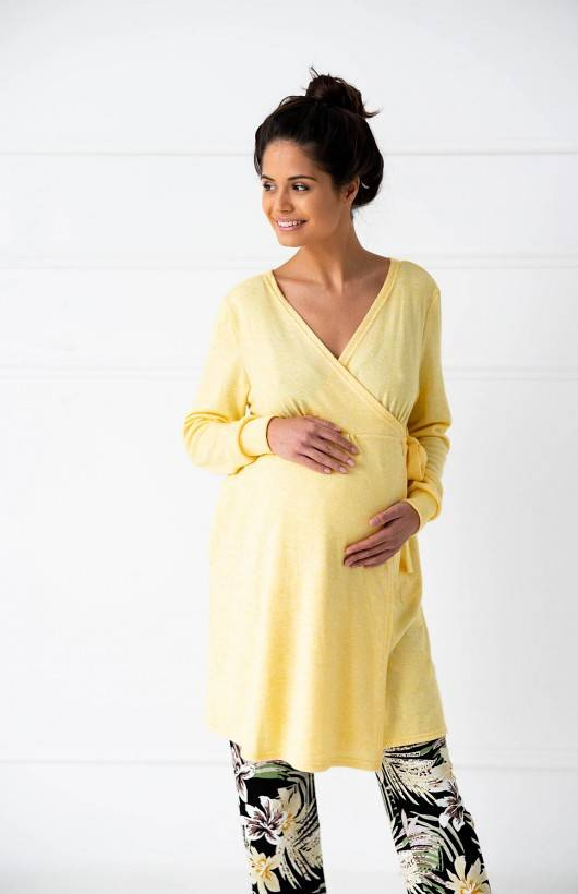 Szlafrok damski wykonany z przyjemnego dla ciała materiału. Model z długim rękawem. Kopertowy fason z paskiem świetnie dopasowuje się do sylwetki. Szlafrok idealnie komponuje się z koszulą bądź piżamą dostępną w naszej kolekcji bielizny nocnej. Szlafrok wiązany pod biustem idealnie nadaje się dla kobiet w ciąży i mam karmiących. Po bokach posiada wygodne kieszenie