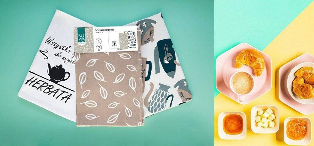 Komplet ściereczek to zestaw o podobnym motywie wzorniczym i spójnej kolorystyce.