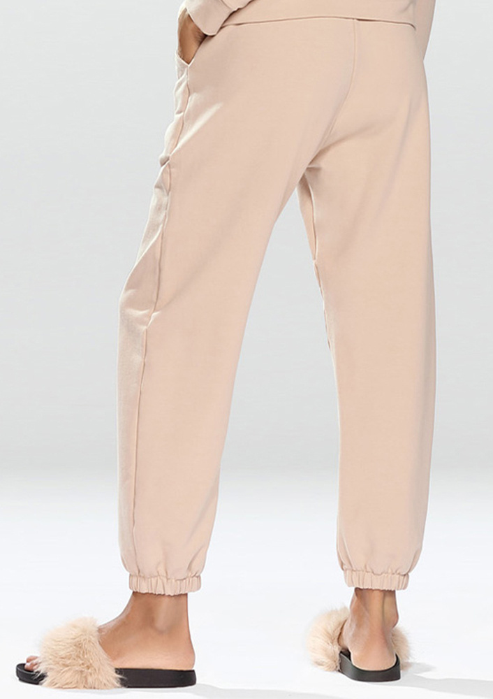 Spodnie dresowe to absolutny faworyt wśród domowej garderoby. Spodnie wykonane są z gładkiego, przyjemnego materiału. Posiadają na dole nogawek ściągacze, dwie kieszenie oraz są na gumce. Dzięki sznurkom łatwo można regulować wielkość w pasie. Idealne na dzień biegania po mieście czy ćwiczenia na siłowni.