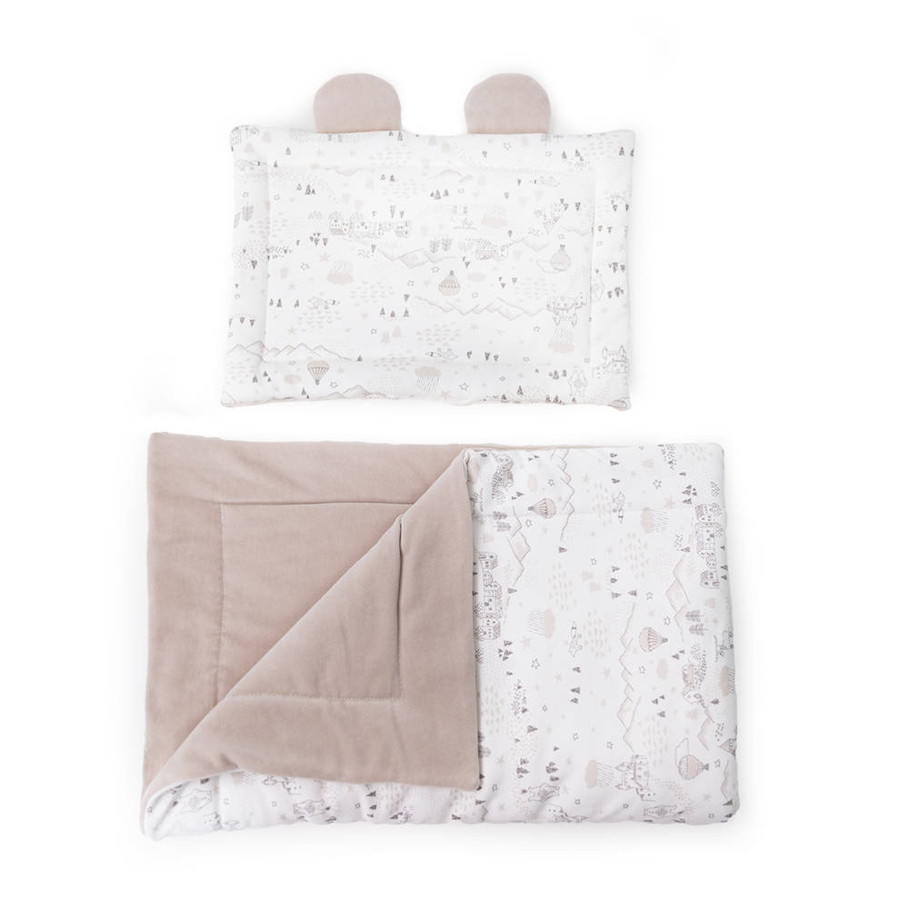 Zapytaj o produktKomplet pościeli Muriel składający się miękkiej i ciepłej kołderki wraz z poduszką. Zestaw stworzony został z myślą o najmłodszych. Poszewka wykonana z wysokiej jakości bawełny, wypełniony antyalergiczną włókniną silikonową. Całość dopełnia delikatny wzór w kolorze beżowo - brązowym z motywem miasteczka.