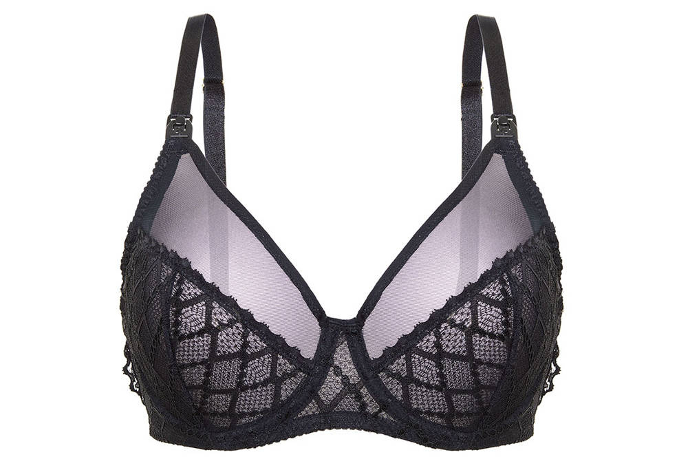 Biustonosz wykonany z miękkiej i elastycznej koronki w unikatowy wzór. Fiszbiny są bezpieczne dla piersi i nie uciskają gruczołów mlecznych .Podtrzymuje nawet duży biust. Posiada klipsy Easy-Off marki Fildan, które ułatwiają karmienie jedną ręką. Ramiączka są regulowane.