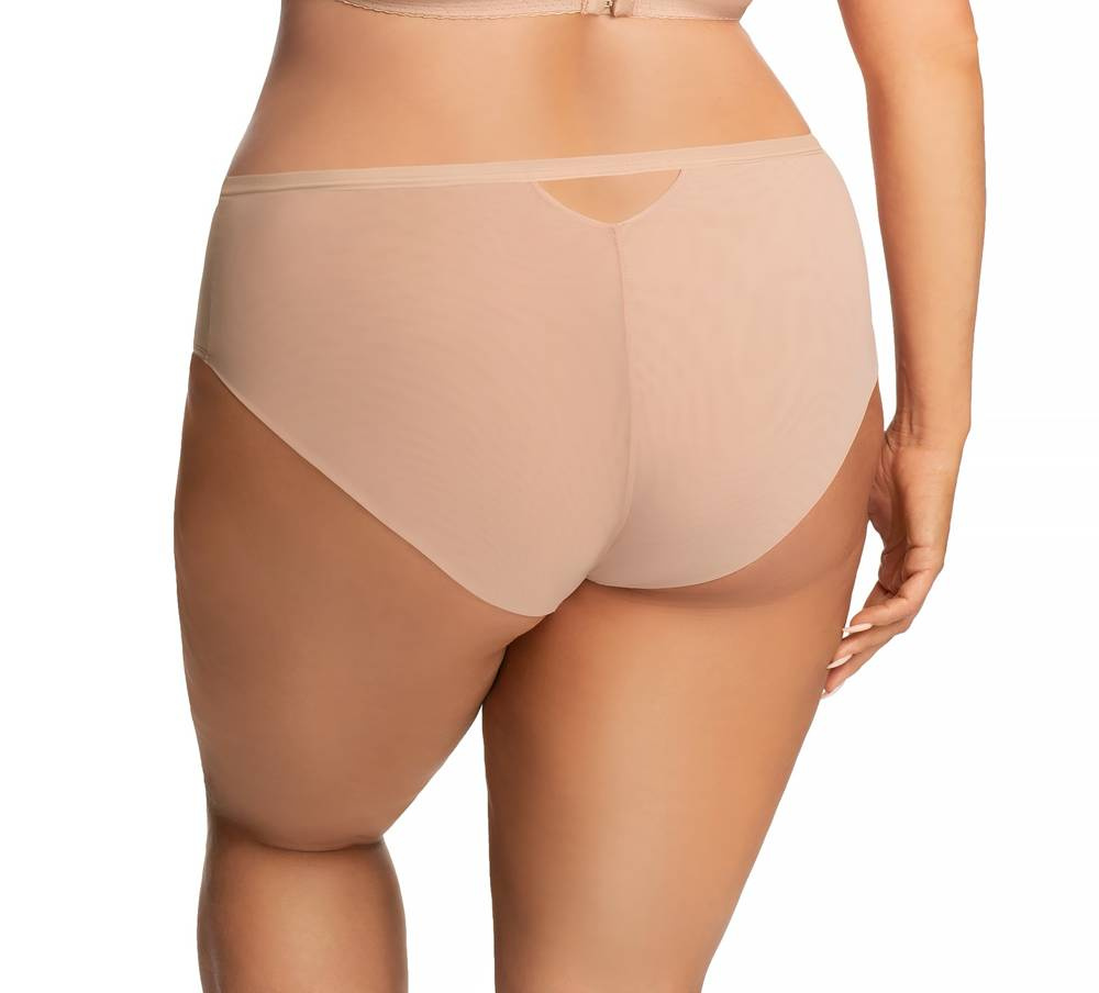 Figi damskie  wykonane z gładkiej mikrofibry i tiulowej siateczki zdobionej ażurową koronką.