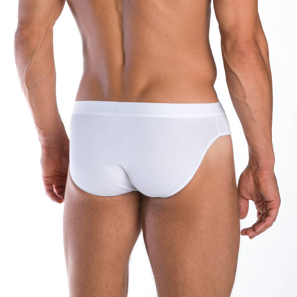 Klasyczne slipy męskie, w pasie guma zewnętrzna, z przodu logo LAMA