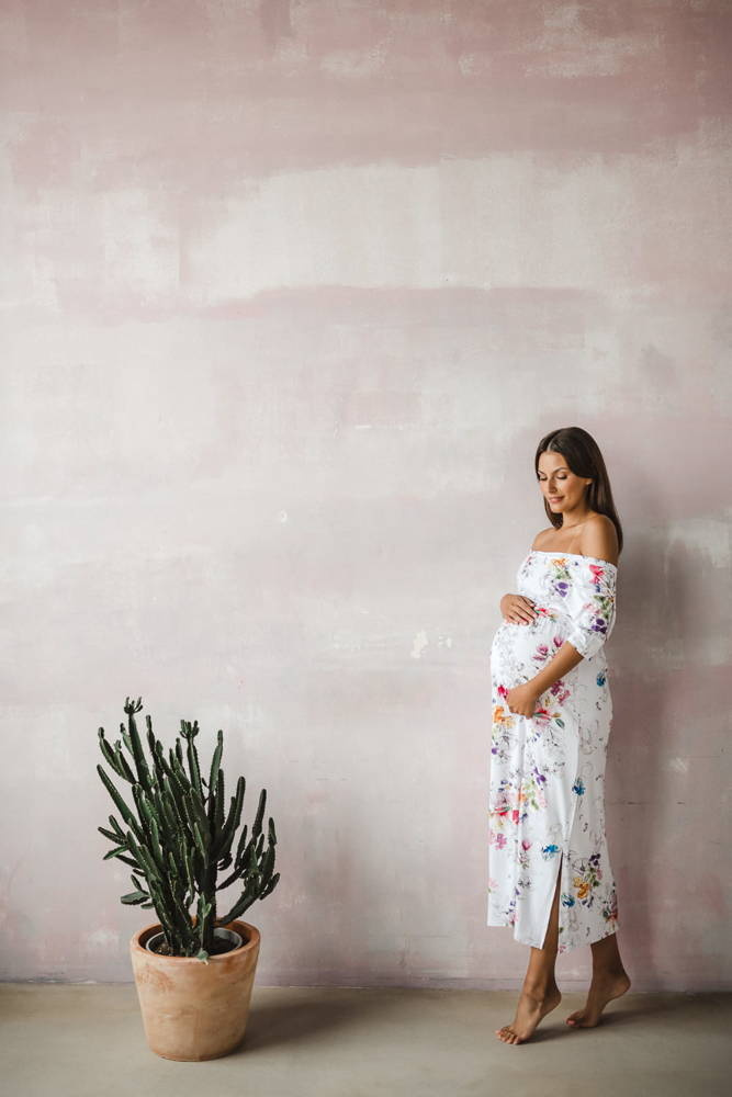 - Elegancka sukienka ciążowa wykonana z lekkiej wiskozy,