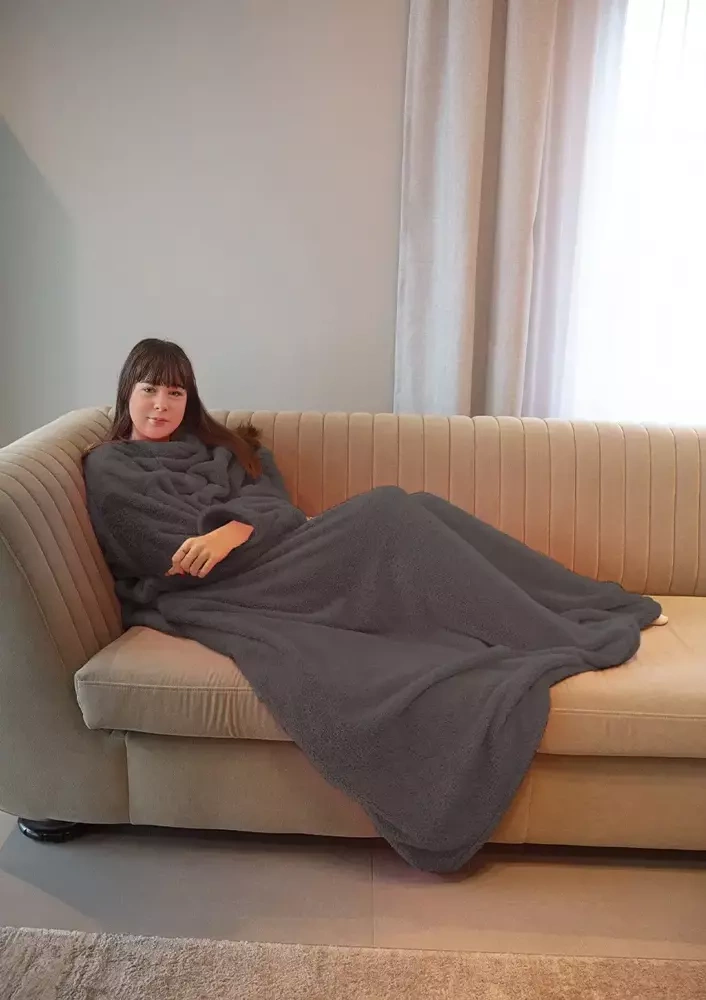 Opinie o Koc z rękawami Dkaren szary