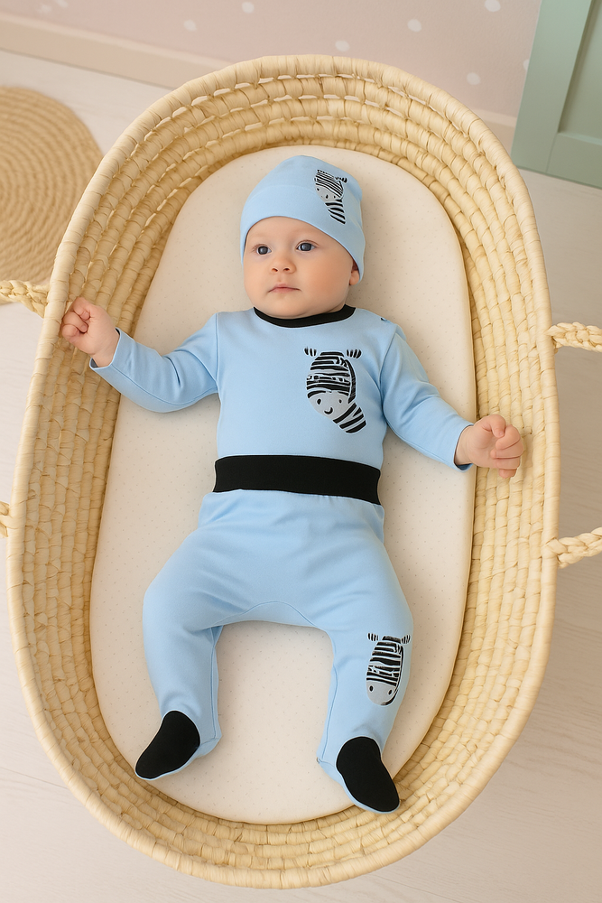 Wyprawka niemowlęca "Zebra" Terjan - niebieski