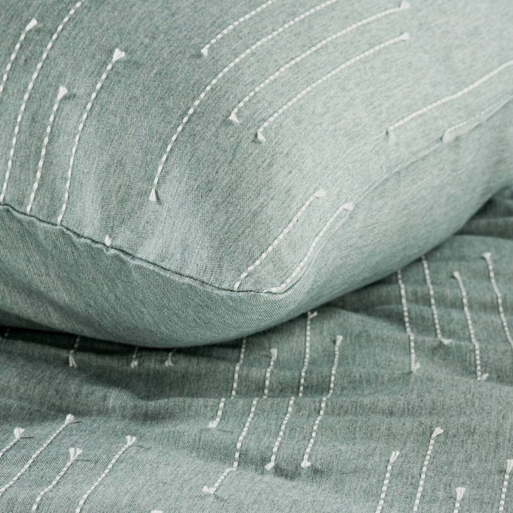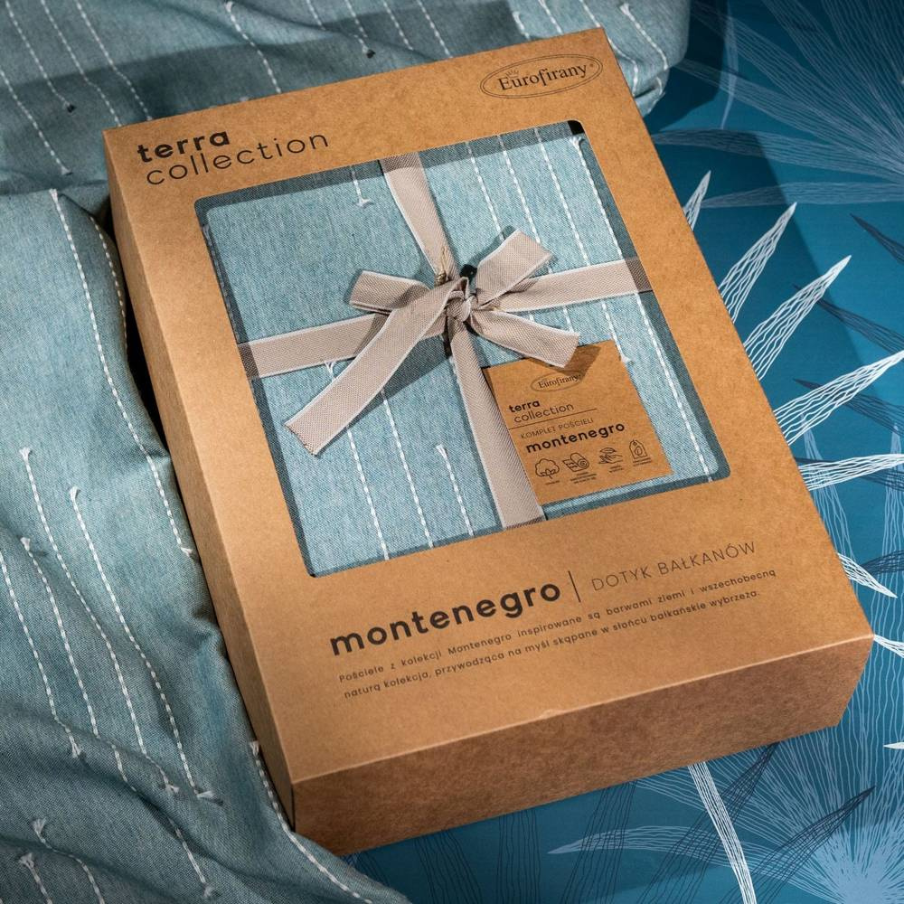 Polecamy komplet pościeli MONTENEGRO 8 z ozdobnymi przeszyciami wizualnie uspokoi wnętrze Twojej sypialni subtelnym odcieniem zgaszonej zieleni. Rozmieszczone na całej powierzchni delikatne stebnowania z wystającymi na końcach niteczkami nadają jej niepowtarzalnego charakteru. Komplet pościeli posiada system praktycznych zamków błyskawicznych, dzięki czemu zmiana pościeli zajmuje tylko krótką chwilę.  Nowoczesna technika barwienia i nadruku sprawia, że pościel nie traci swojej intensywności, nawet po wielu praniach. Ekologiczne kartonowe opakowanie jest w pełni biodegradowalne, a przy tym sprawia, że produkt znakomicie się prezentuje i jest idealnym pomysłem na prezent.