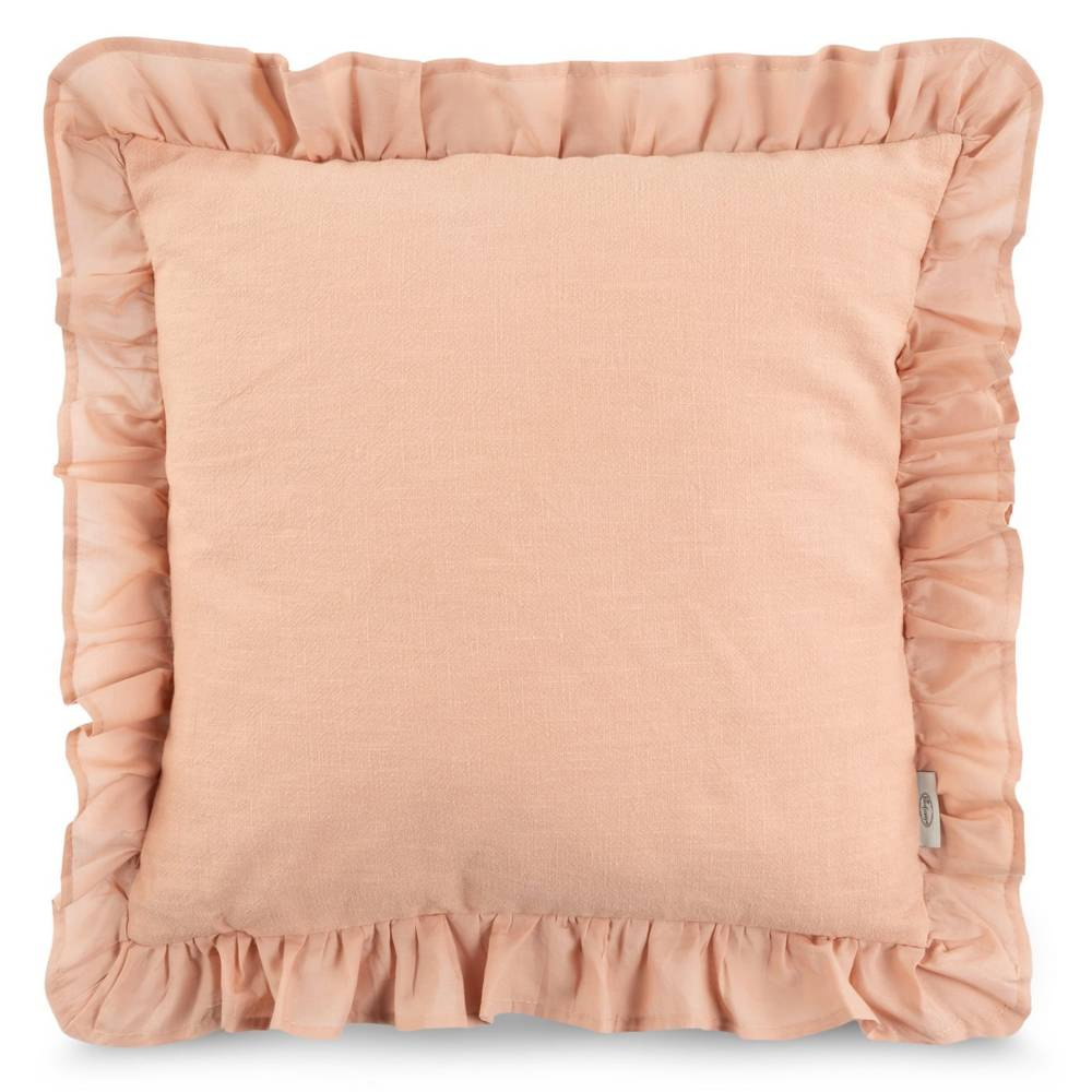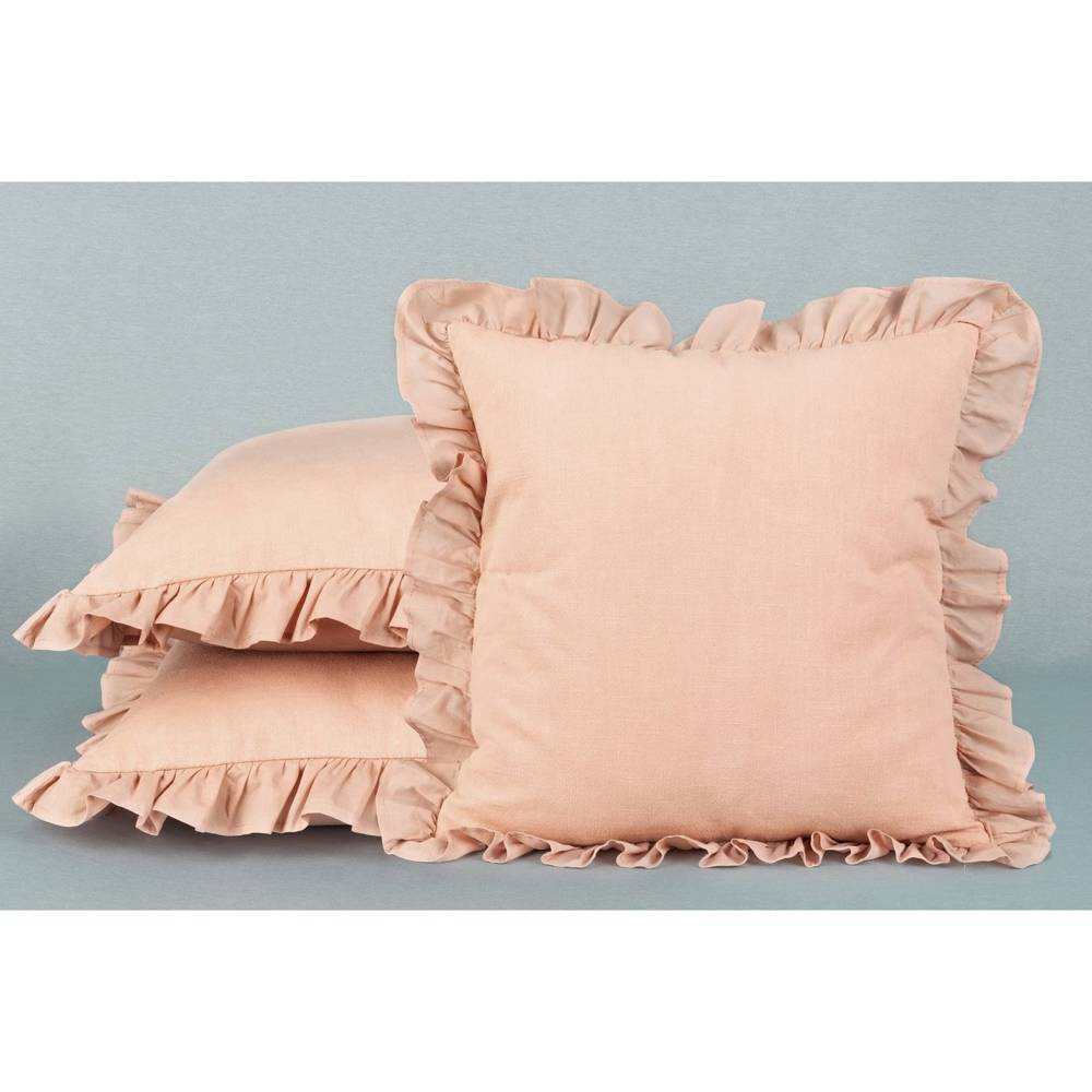 Poszewka z lnianej tkaniny obszyta efektowną bawełnianą falbanką doda wnętrzu romantycznego uroku. Poszewki dekoracyjne sprawdzają się znakomicie w modnych nowoczesnych wnętrzach, mogą stanowić dekorację sypialni, przydadzą się także na tarasie czy balkonie. Idealny pomysł na prezent.