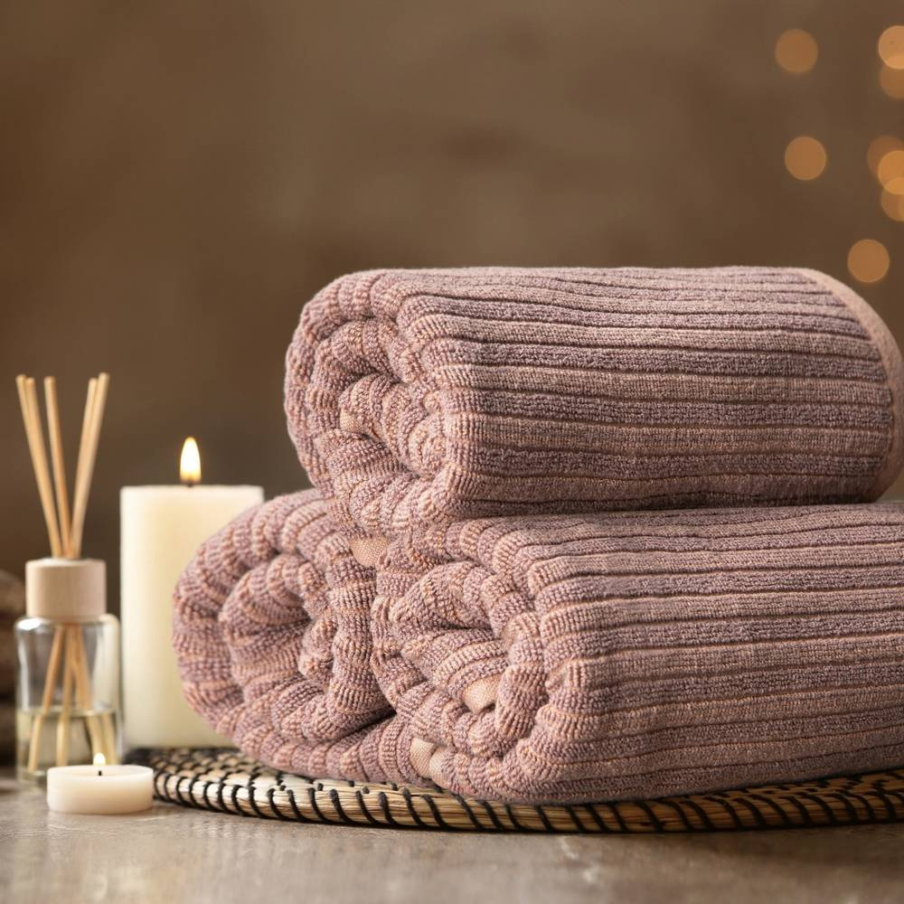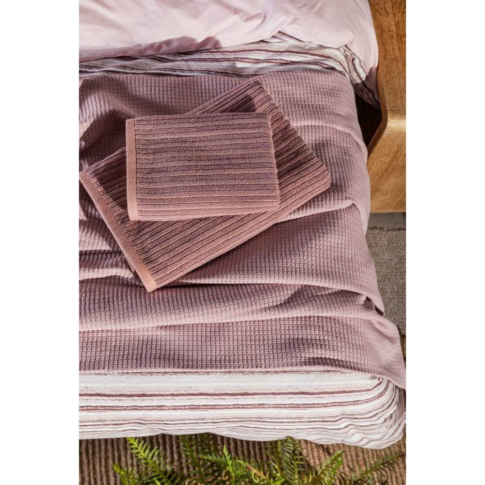 Wysokiej jakości ręcznik AVINION tkany w prążki na całej powierzchni to nowoczesny dodatek do modnej łazienki w stylu eko. Wyjątkowe zalety ręcznika to niezwykle wysoka chłonność, błyskawicznie osuszy ciało po kąpieli oraz modny design. Kolekcja Avinion to idealna kompozycja pastelowych odcieni różu, nasyconego burgundu oraz lawendowego fioletu, które dodają wnętrzom szyku i niepowtarzalnego charakteru.