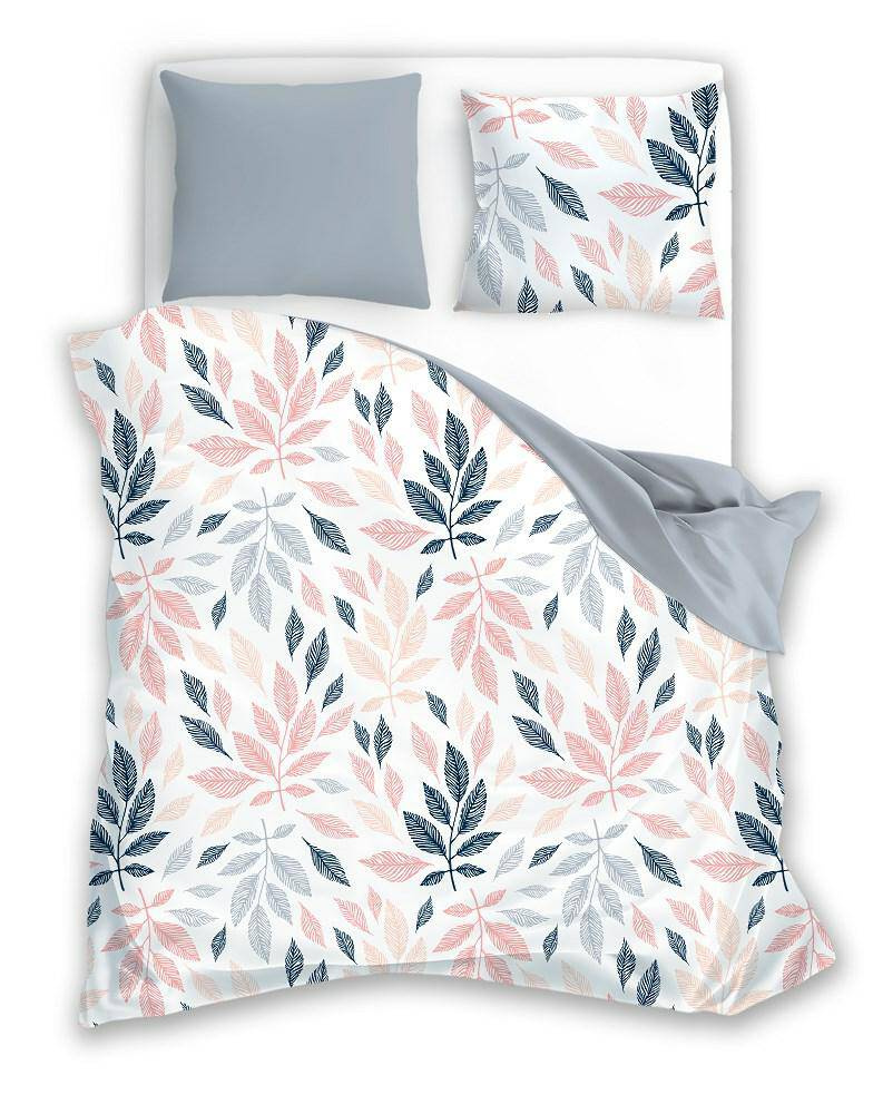 Fashion 2 Pościel bawełniana liście Faro morelowy-szary-granatowy 011