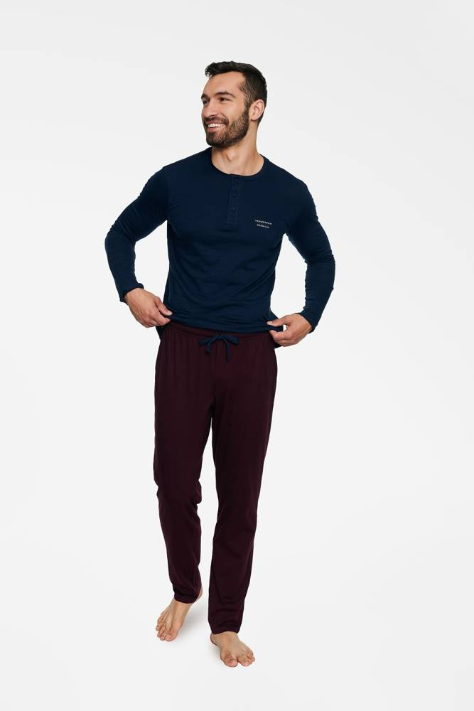Piżama męska wykonana z wysokiej jakości bawełny. Koszulka z długim rękawem, dekolt zapinany na guziki
