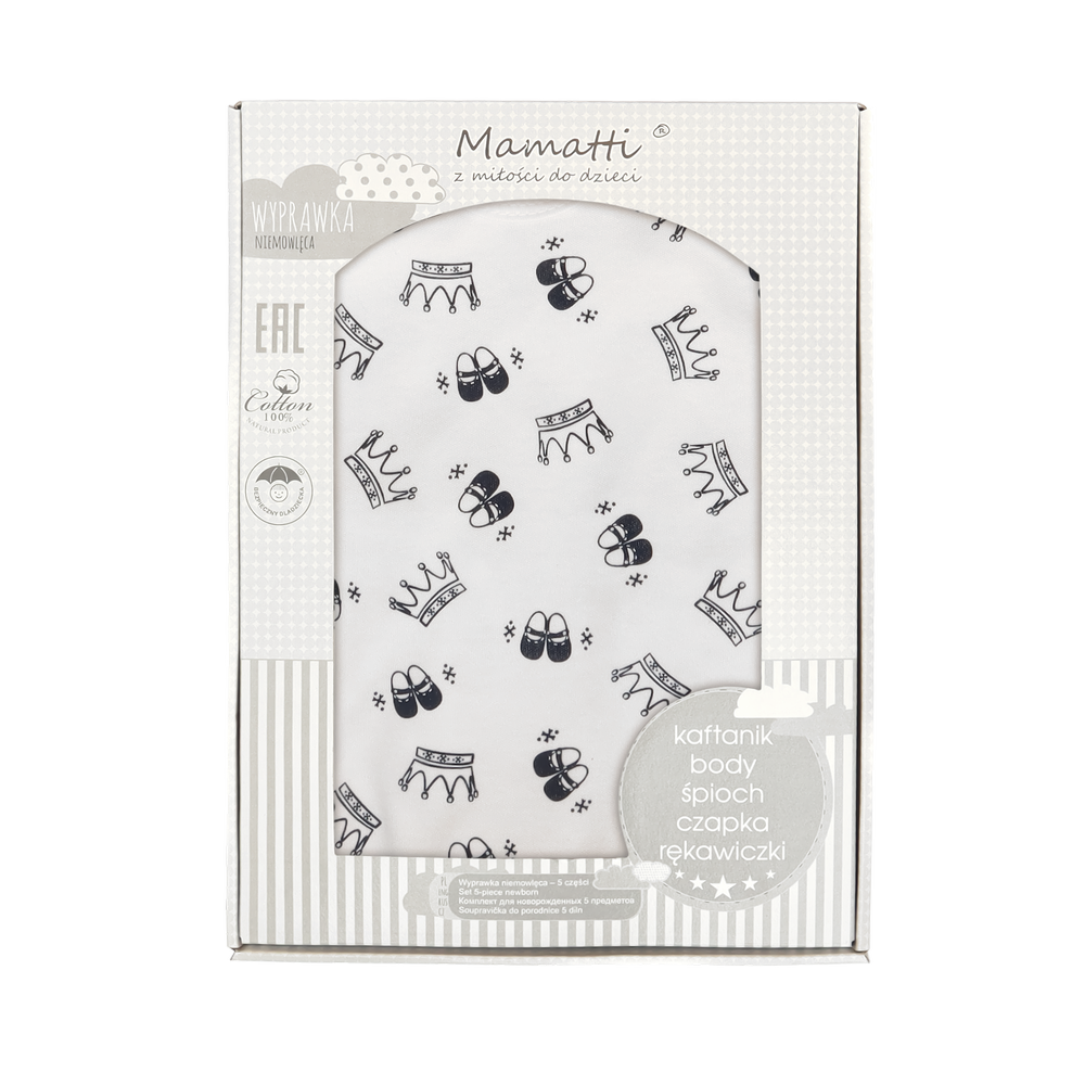 WP404 "Korona" Wyprawka niemowlęca Mamatti biało-czarne