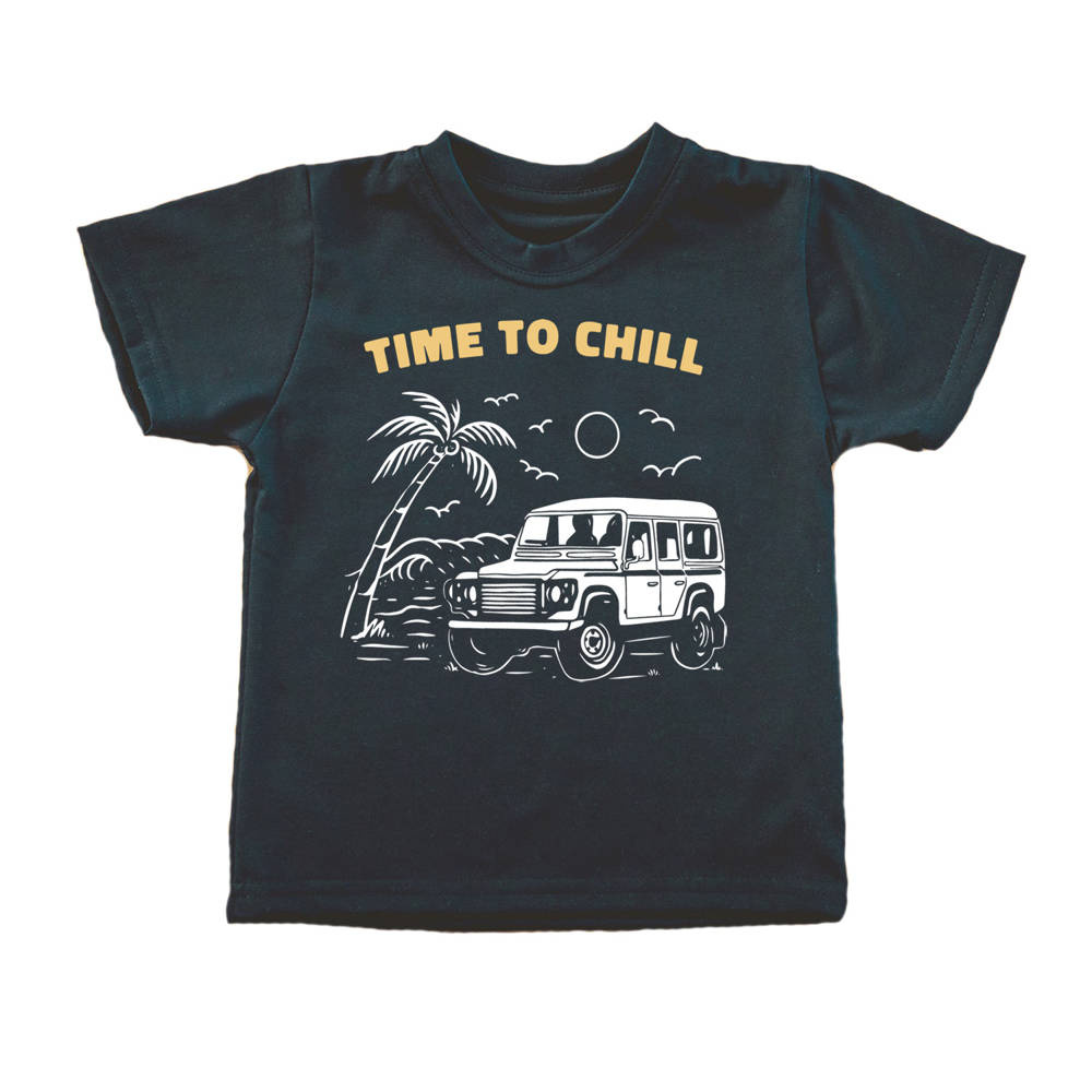"WAKACJE – TIME TO CHILL" Koszulka dziecięca krótki rękaw Moocha czarny