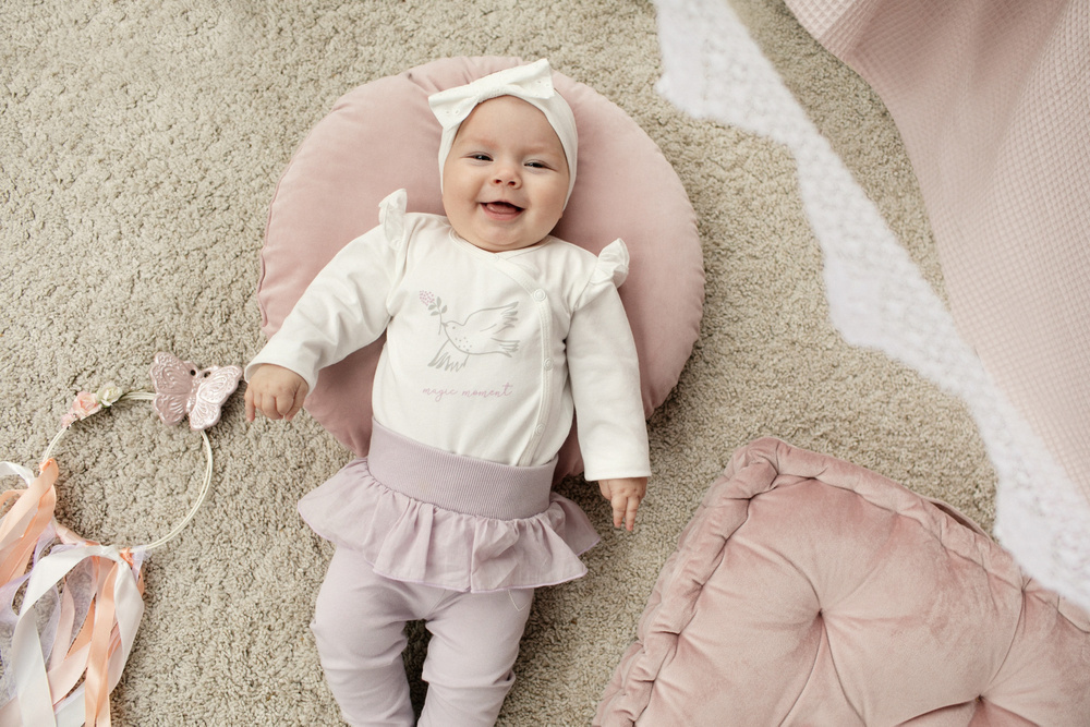 Dzięki dodatkowi elastanu, nasza opaska dobrze przylega do głowy dziecka, ale jej nie uciska. Możesz ją dowolnie łączyć ze wszystkimi ubrankami z kolekcji Charlotte, tworząc ciekawe stylizacje na co dzień lub do żłobka.