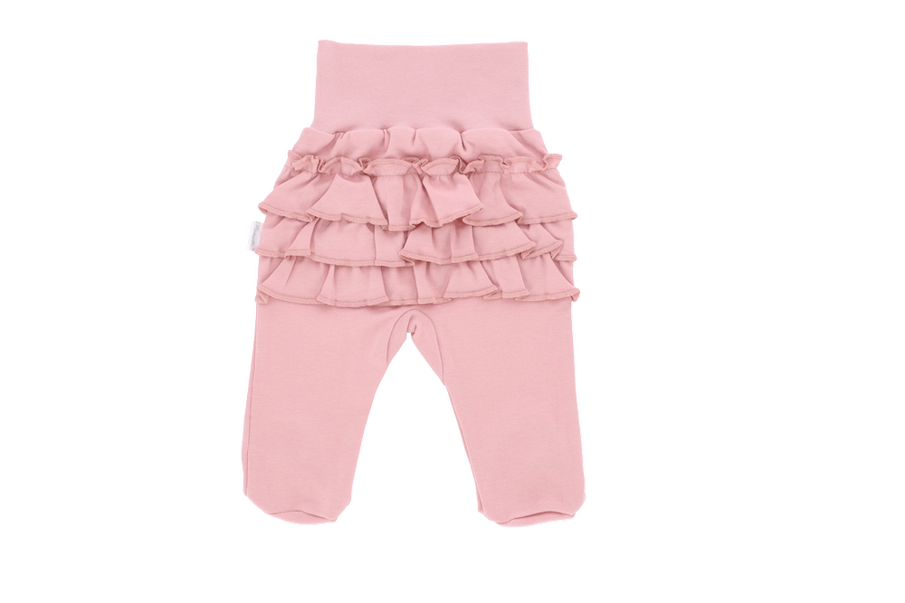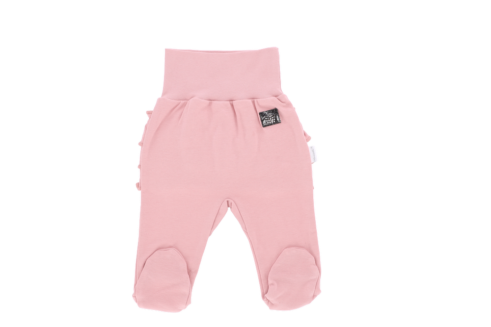 Półśpioch ze stópkami jest doskonałym produktem w zestawieniu z body. Posiada szeroki, nieuciskający ściągacz w pasie, który doskonale przylega do dziecia. Półśpiochy wykonane z bawełny bezpiecznej dla skóry dziecka. Doskonale chronią stopy dziecięce przed wychłodzeniem. Tył ozdobiony falbanką.
