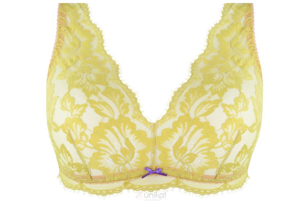 Biustonosz Melisa pozbawiony jest fiszbin, ale jego konstrukcja nadaje piersiom piękny i naturalny wygląd. W całości został wykonany z wyrazistej zielonej koronki z motywem kwiatowym. Zapewnia wygodę przez cały dzień użytkowania.