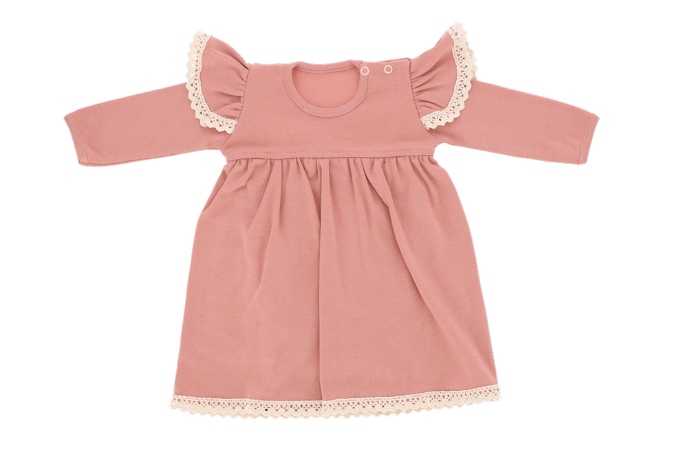 Urocza sukienka z długim rękawem, wykończona uroczymi falbankami. Wykonana w 100% z bawełny.