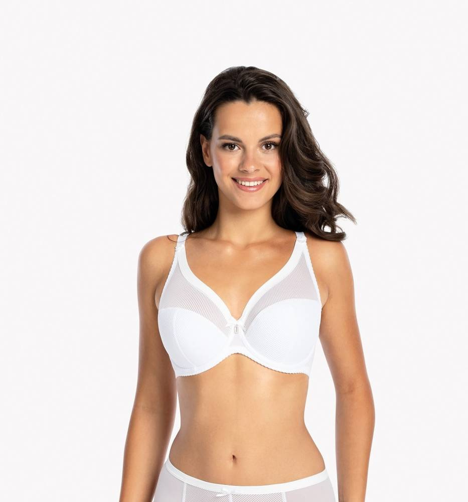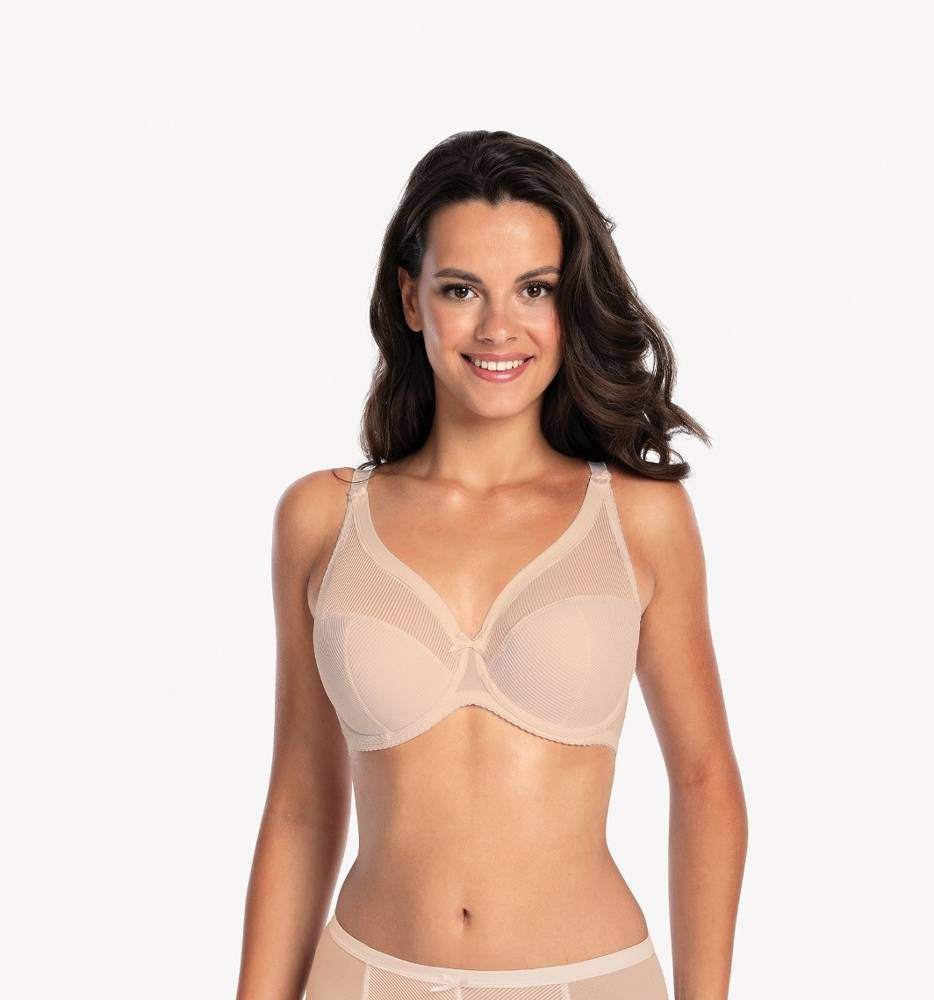 Wygodny, kobiecy biustonosz z półusztywnianą miseczką wykonany z mikrofibry w prążek