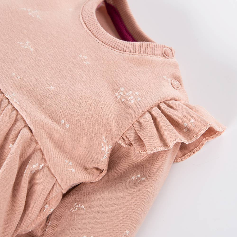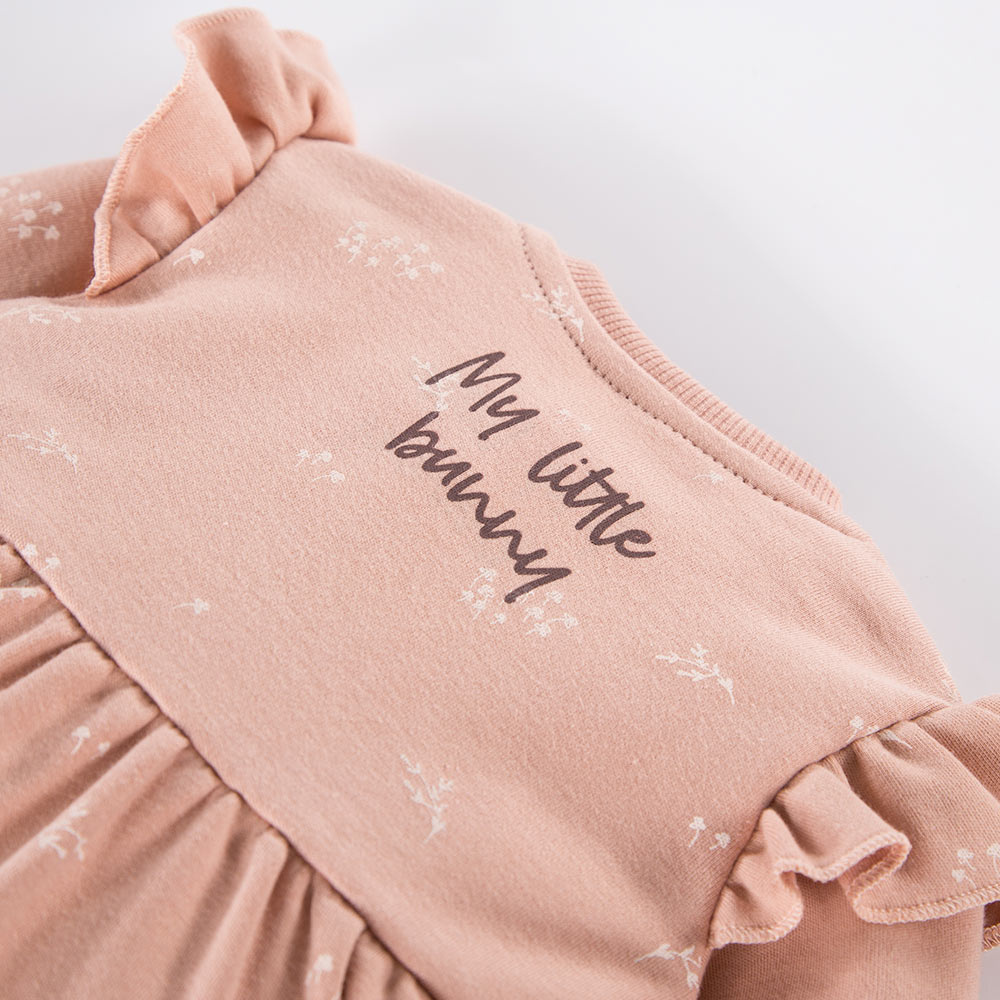 Zapytaj o produktSukienka dziewczęca z kolekcji "Bloom" wykonana z miękkiej i przyjemnej w dotyku tkaniny. Elementem ozdobnym sukienki są falbany. Krój sukieneczki jest rozkloszowany. Z tyłu ozdobny napis.