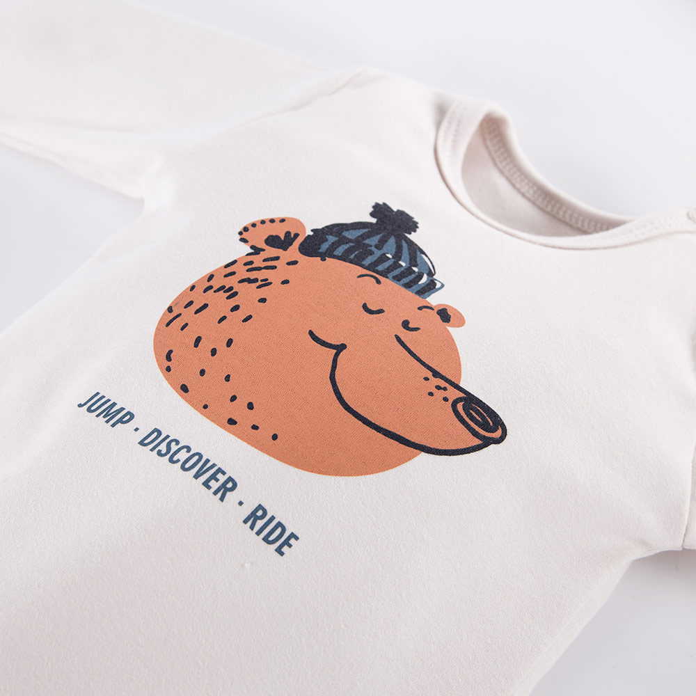 Body drukowane uszyte z miękkiej i przyjemnej w dotyku dzianiny bawełnianej.