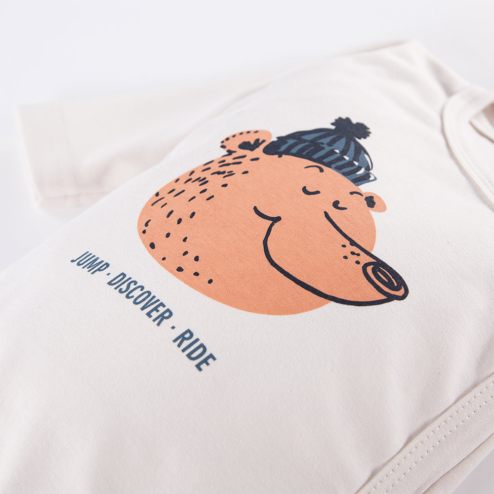 Body drukowane uszyte z miękkiej i przyjemnej w dotyku dzianiny bawełnianej.