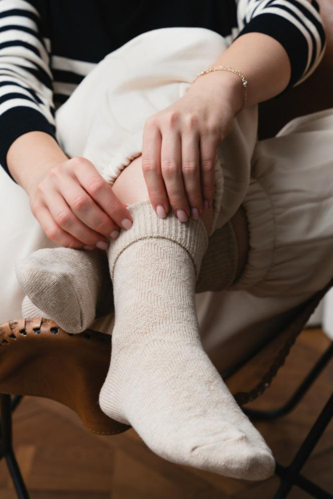Damskie skarpety wełniane z wysokim ściągaczem. Dostępne w szerokiej gamie splotów i kolorów.