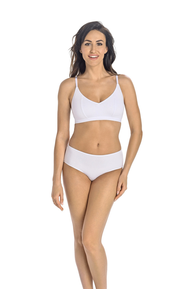Klasyczne majtki damskie ze średnim stanem. Wysokiej jakości bawełna i dodatek elastycznej nici lycry gwarantują idealne dopasowanie do sylwetki oraz długie, wygodne użytkowanie. W kroku od wewnątrz figi wykończone są dodatkową warstwą bawełny absorbującej wilgoć i gwarantującej komfort w trakcie noszenia. Majtki damskie nie posiadają zdobień i nie odznaczają się spod ubrań. Majteczki te adresowane są do kobiet ceniących sobie prostotę i wygodę.