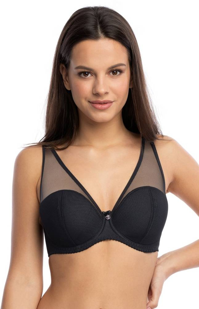 Wygodny, kobiecy biustonosz z półusztywnianą miseczką wykonany z siateczki w kolorze beżowym