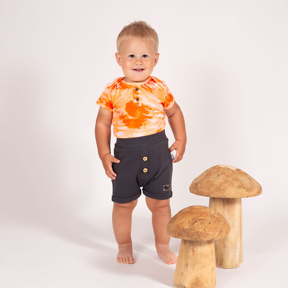 Praktyczne i wygodne body z kolekcji Tomi. Wykonane z mięciutkiej bawełny. Zapinane na bezniklowe napki. Komfortowe dla najmniejszych, dzięki możliwości całkowitego rozpięcia.