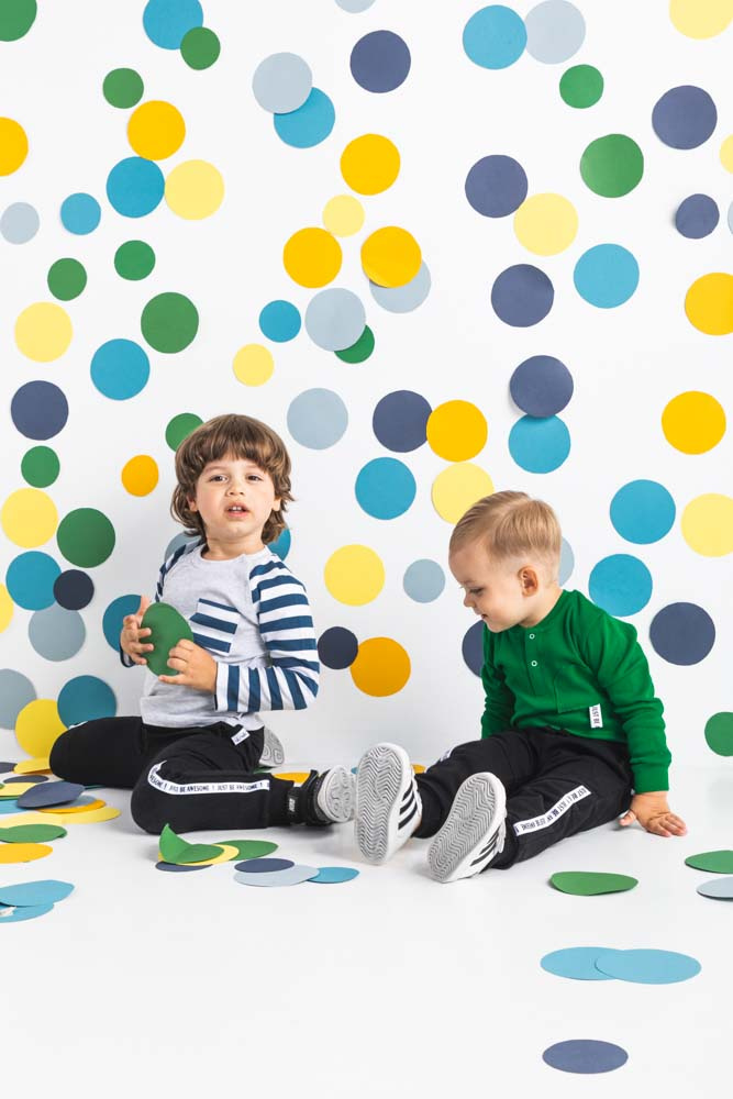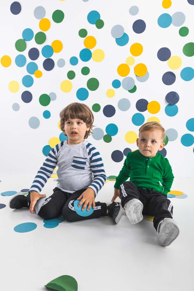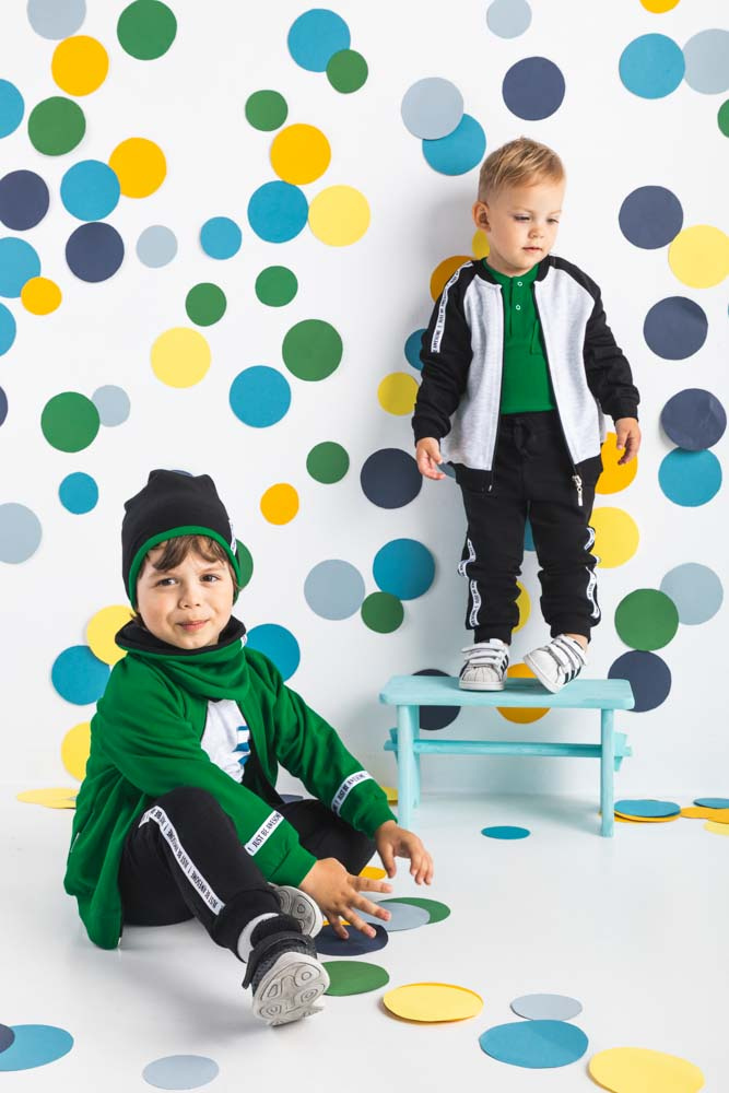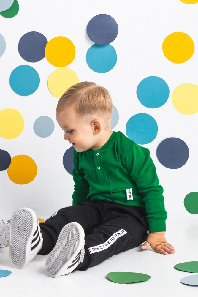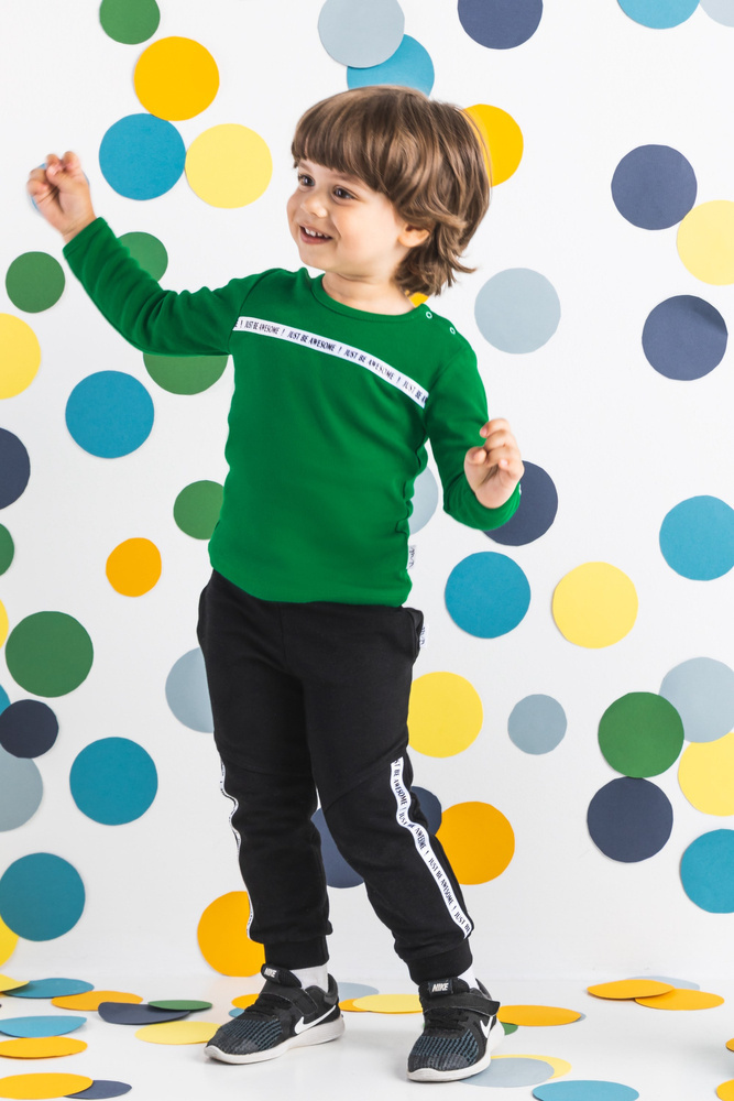 Modne spodnie dla chłopca wykonane z bawełny dresowej, która jest całkowicie bezpieczna dla skóry dziecka. Spodnie posiadają ściągacz w pasie oraz przy nogawkach.
