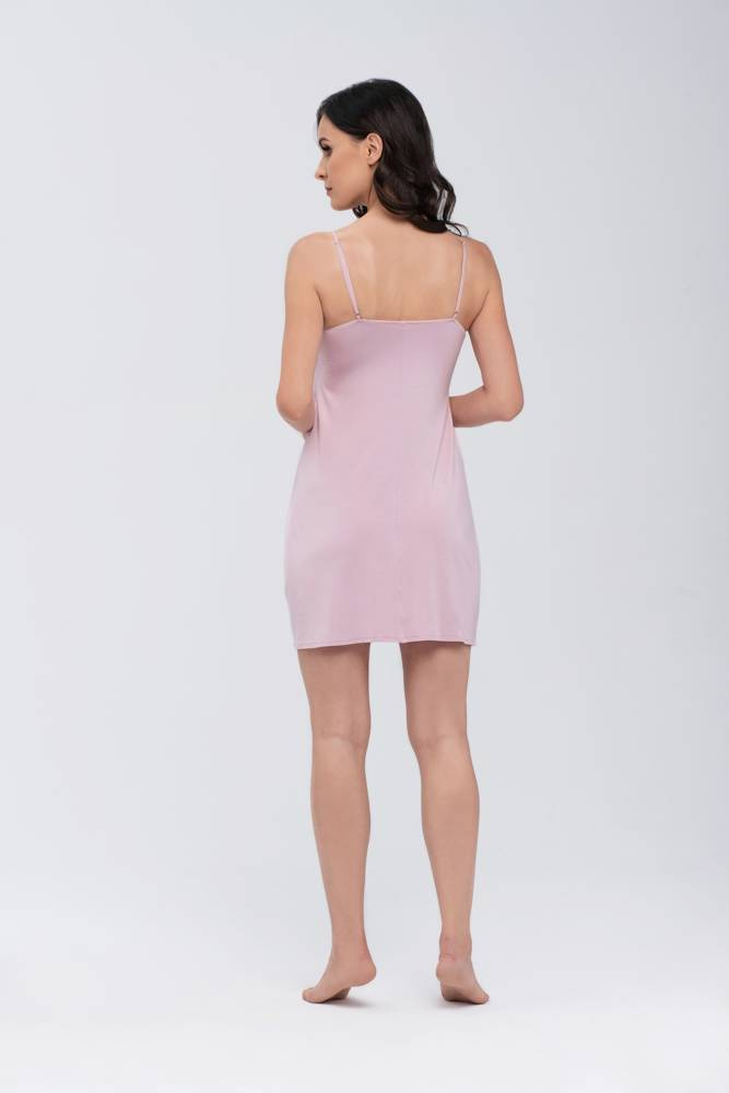 Koszulka nocna na wąskich, regulowanych ramiączkach. Świetnie utrzymuje i podkreśla biust dzięki wyjmowanym wkładkom. To w połączeniu z pięknym dekoltem wykończonym koronką uwydatnia kobiece kształty. Koronka doszyta w tali tworzy sylwetkę klepsydry.