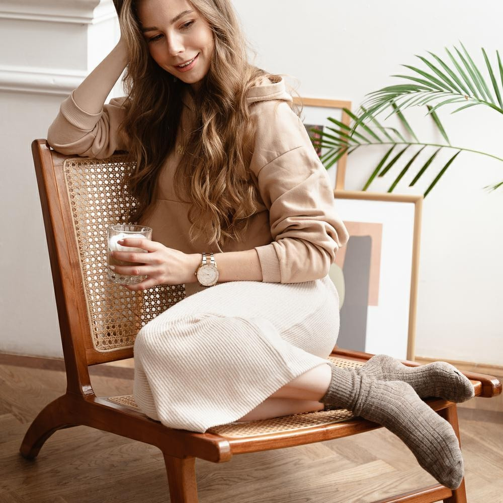 Skarpety damskie wykonane z wełny alpaki, która jest trzykrotnie mocniejsza od owczej wełny.