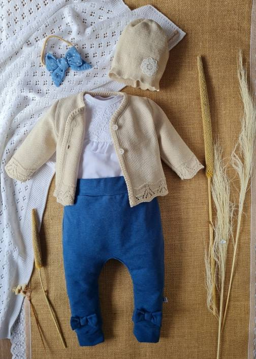Mięciutka, opaska to efektowna ozdoba dziecięcej główki. Służyć może również jako alternatywa dla letniej czapeczki. Elementem rozpoznawalnym ubranka jest elegancka, a zarazem bardzo dziewczęca kokarda. Doskonale komponuje się z pozostałymi ubrankami z kolekcji Sophie.
