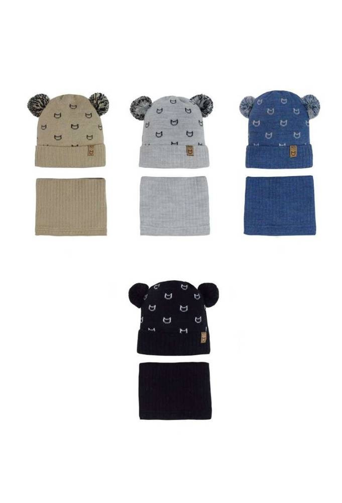 44-447 Czapka+ komin Zestaw dziecięcy AJS granat